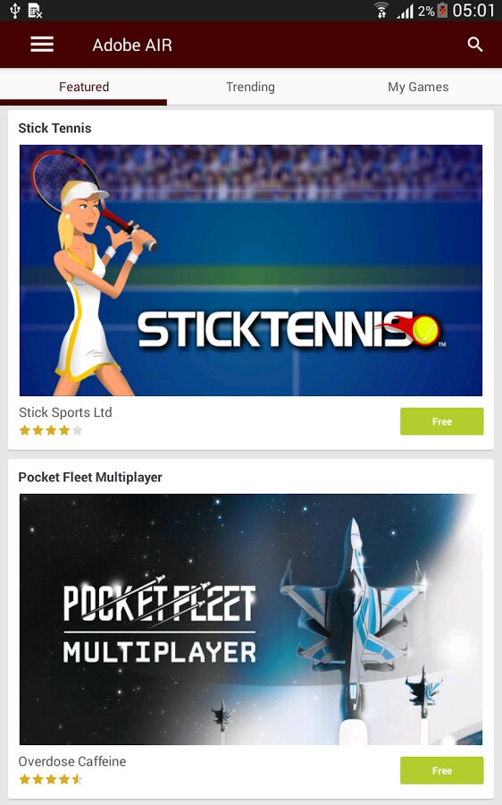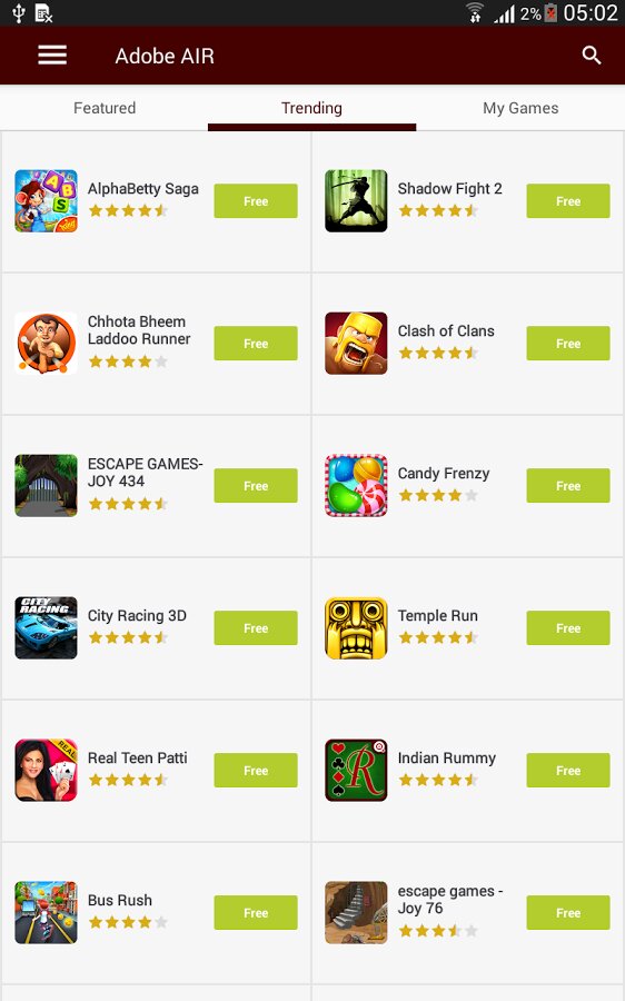 Приложение Adobe AIR позволяет пользоваться веб-приложениями и играми в любое время. На технологии среды выполнения AIR основаны некоторые отмеченные наградами бестселлеры среди мобильных приложений и игр в магазине Google Play.