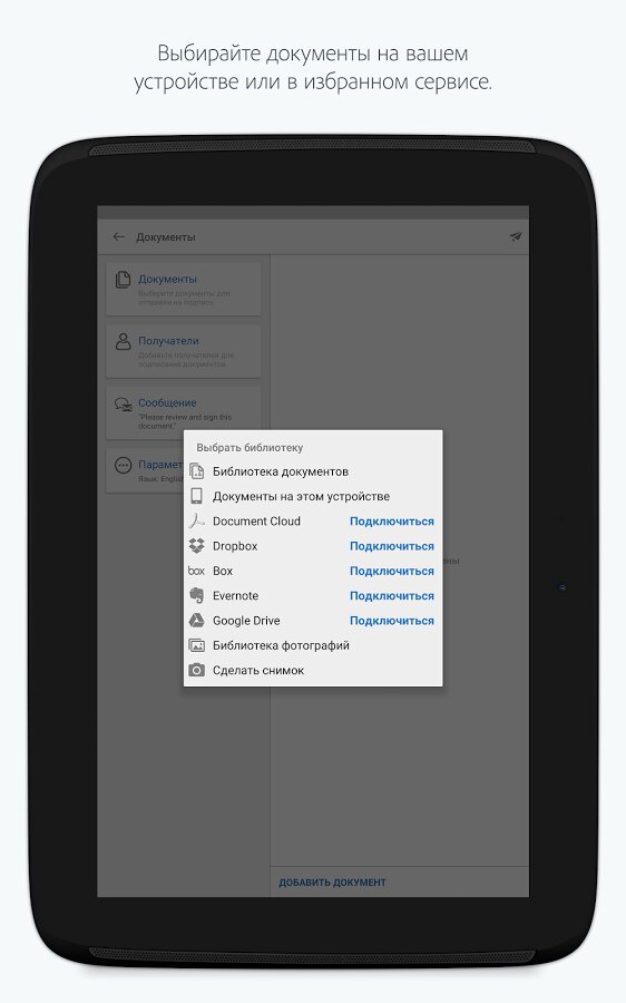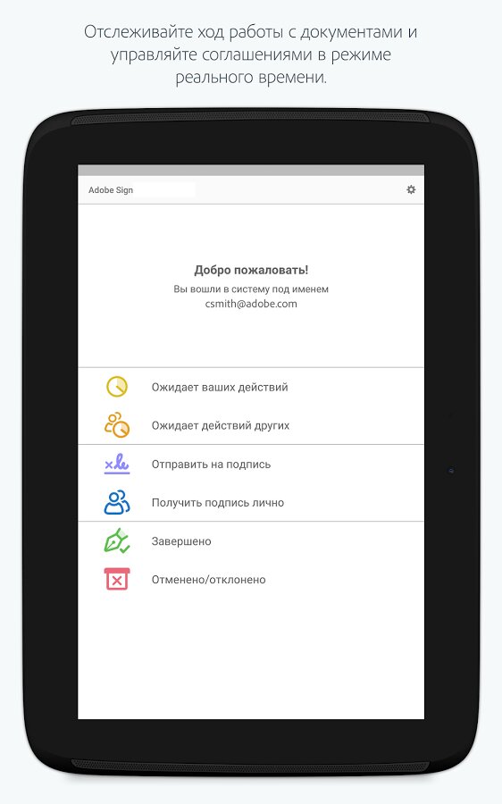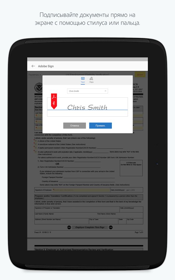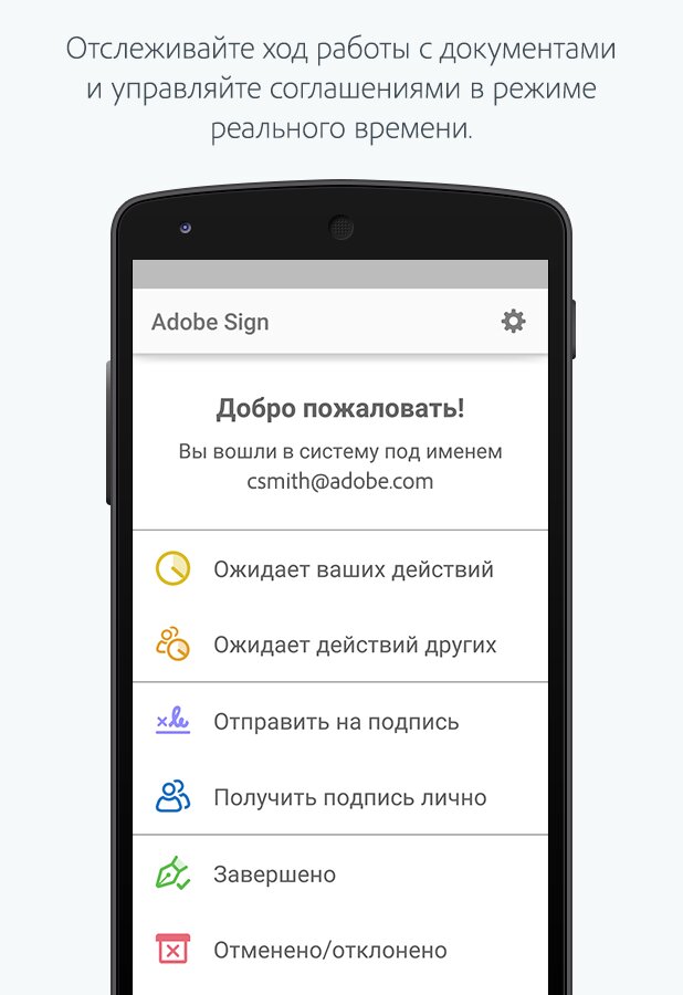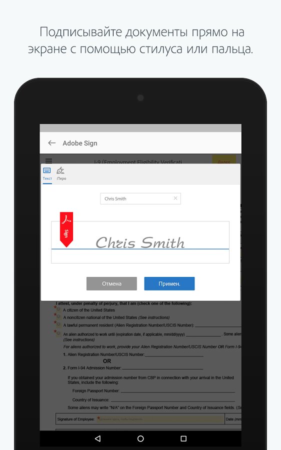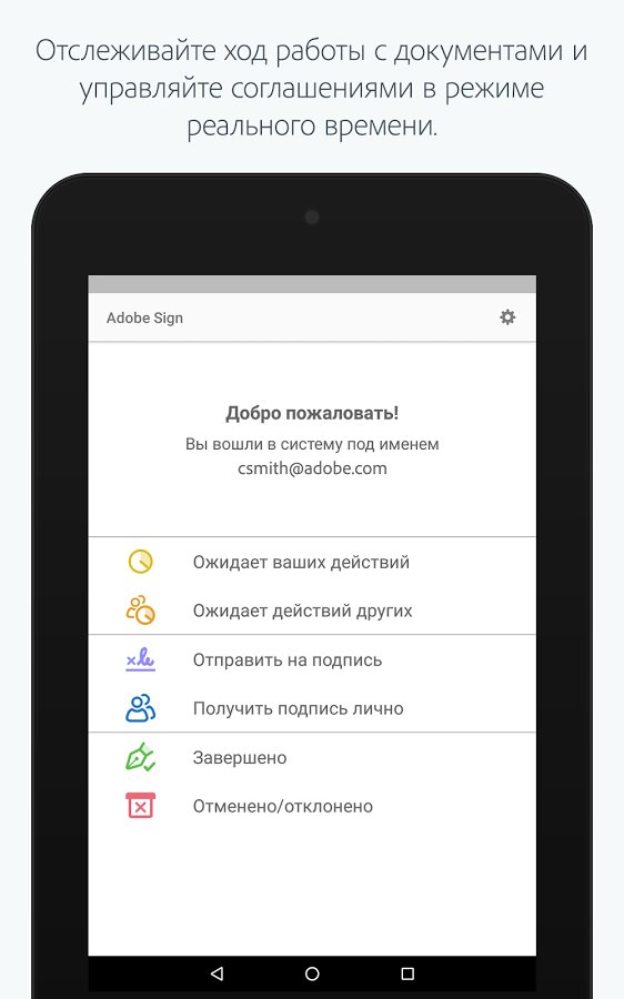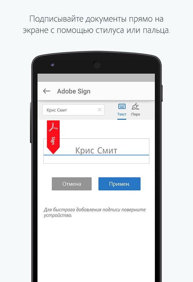 Adobe EchoSign — позволяет создавать вашу подлинную подпись с помощью обычных символов, либо можно нарисовать стилусом аутентичные инициалы, как на бумажных документах. Также приложение может проверять подписи на документах, которые вы получили, на подлинность.