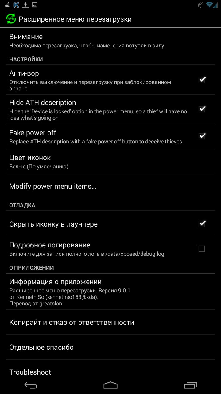 Advanced Power Menu — модуль для Xposed Installer с помощью которого Вы сможете разнообразить меню выключения Вашего смартфона!