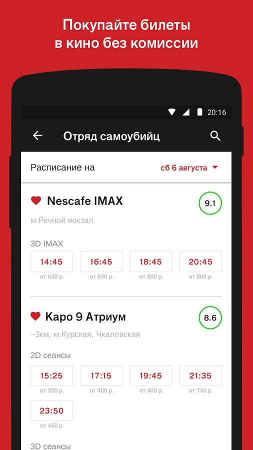 Решили пойти в кино? Киноафиша приложения позволяет не только выбрать фильм и купить билеты на него, но и всегда иметь к ним доступ.Теперь в нашем приложении можно смотреть прямые онлайн трансляции со всего мира!