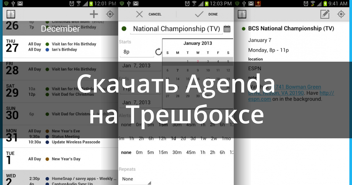 16 января 2013, 00:09 Agenda Calendar 1.0.1 Приложения / Android / Календари и списки дел Скачать на Трешбоксе Android 4.0+ Agenda Calendar — красиво оформленный календарь, пришедший с iOS. Dimaska Пользователь Комментариев пока нет Оставьте комментарий...