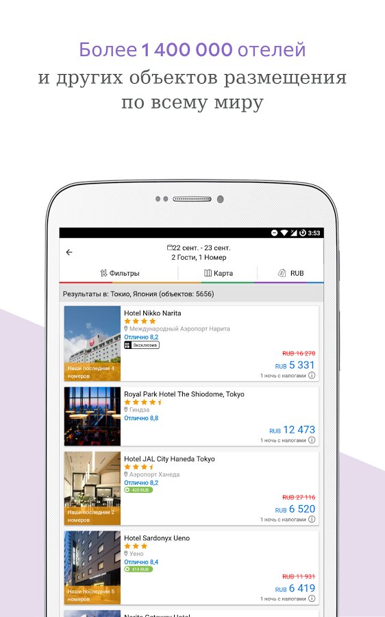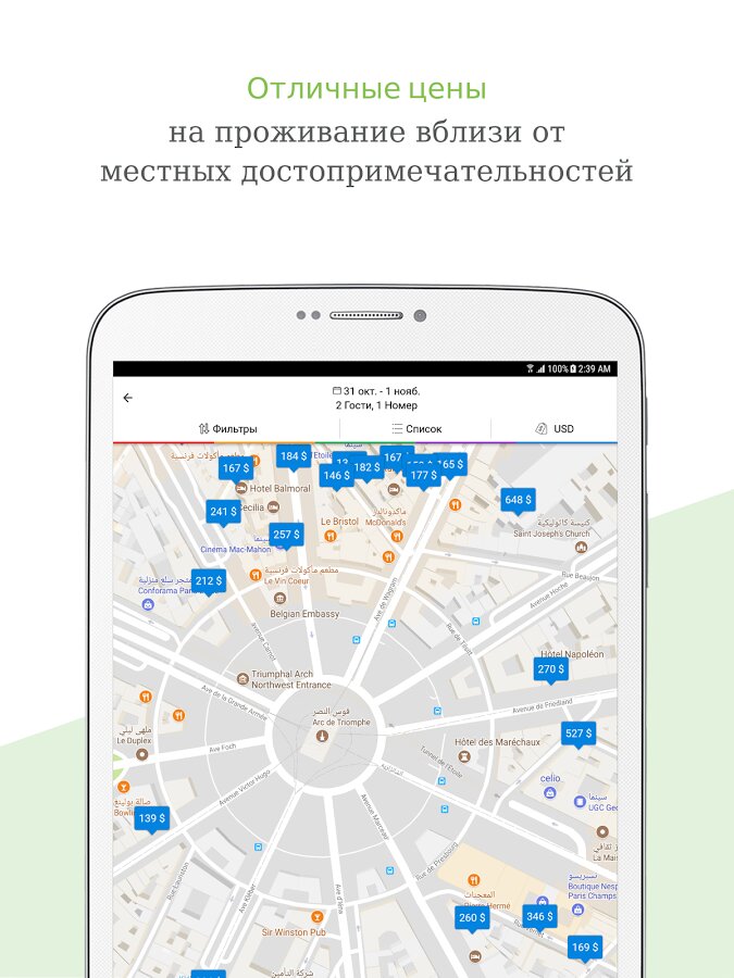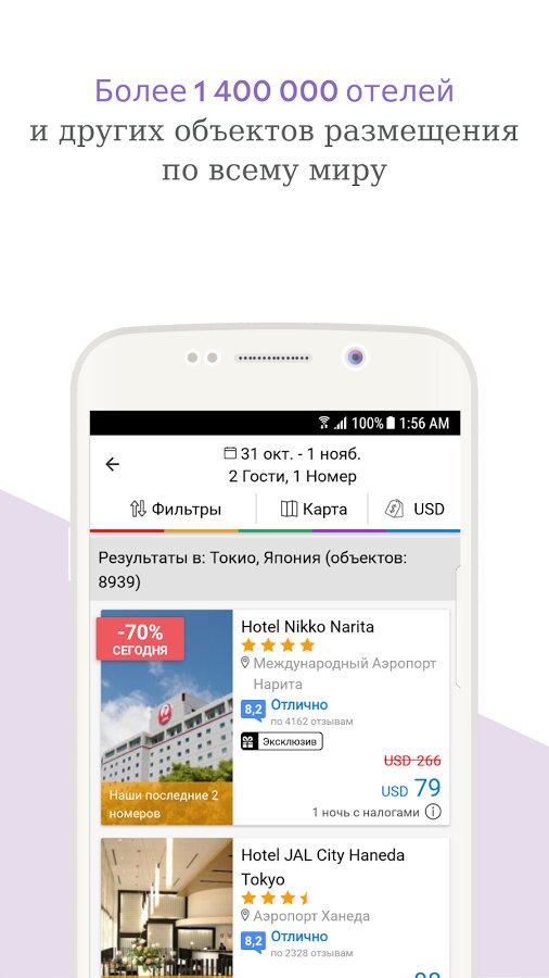 - одним касанием найдите отели, расположенные рядом с вами, где бы вы ни находились.
