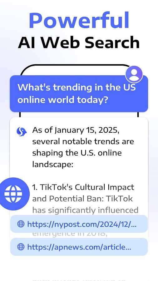 Приложение обеспечивает мгновенные, точные ответы, распознавание изображений, генерацию контента и доступ к веб-поиску в режиме реального времени. Без регистрации и сложных настроек — просто откройте, напишите запрос и получите результат.