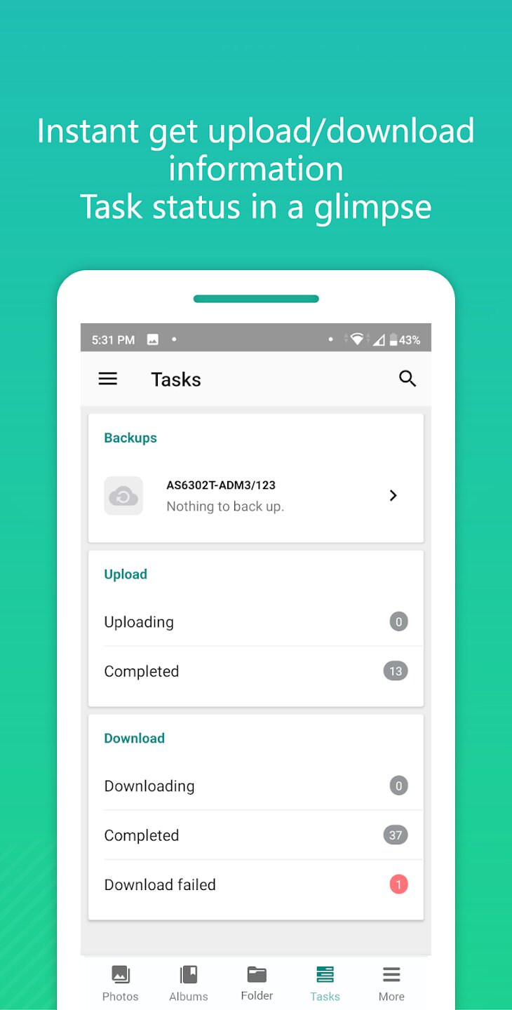 - Зашифрованная передача ссылок для безопасного распространения среди друзей и семьи, а также прямой обмен с пользователями NAS.