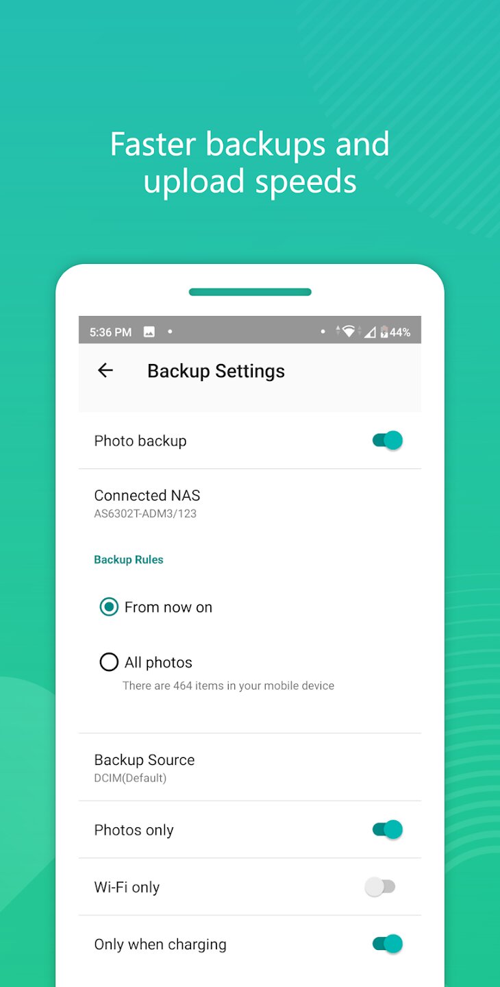 - Автоматическое резервное копирование фотографий с мобильных устройств в режиме реального времени с фоновым выполнением.