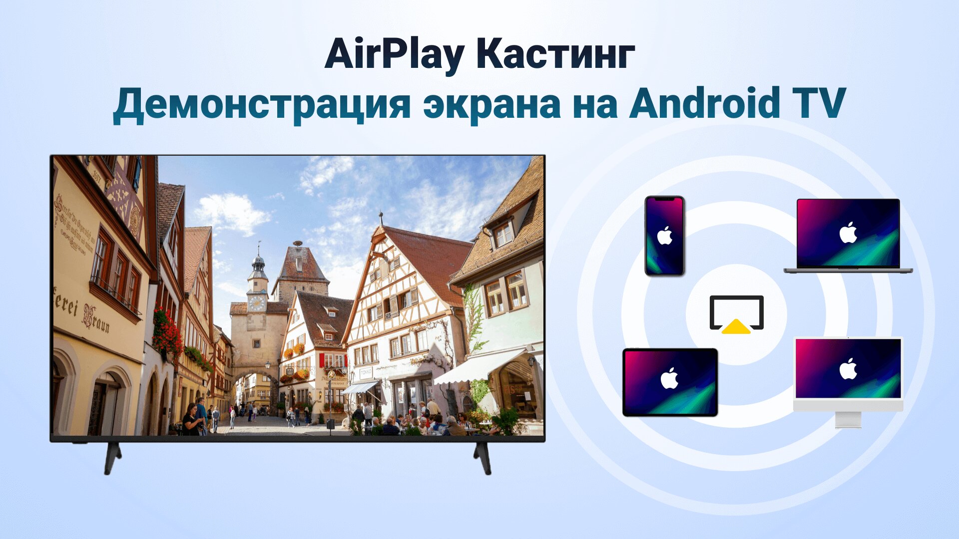 AirMirror Receiver обеспечивает беспроблемную беспроводную трансляцию с устройств Apple, таких как iPhone, iPad и Mac, прямо на Android TV через общую сеть WiFi. Это мощное приложение-приемник избавляет от необходимости переключаться между экосистемами, предоставляя простое решение для дублирования экрана, воспроизведения мультимедиа и обмена контентом. Если вы хотите показать презентацию, поделиться фотографиями из отпуска или устроить вечер кино, это приложение превратит ваш Android TV в полностью совместимый приемник AirPlay без необходимости использования дополнительного оборудования или сложных конвертеров.