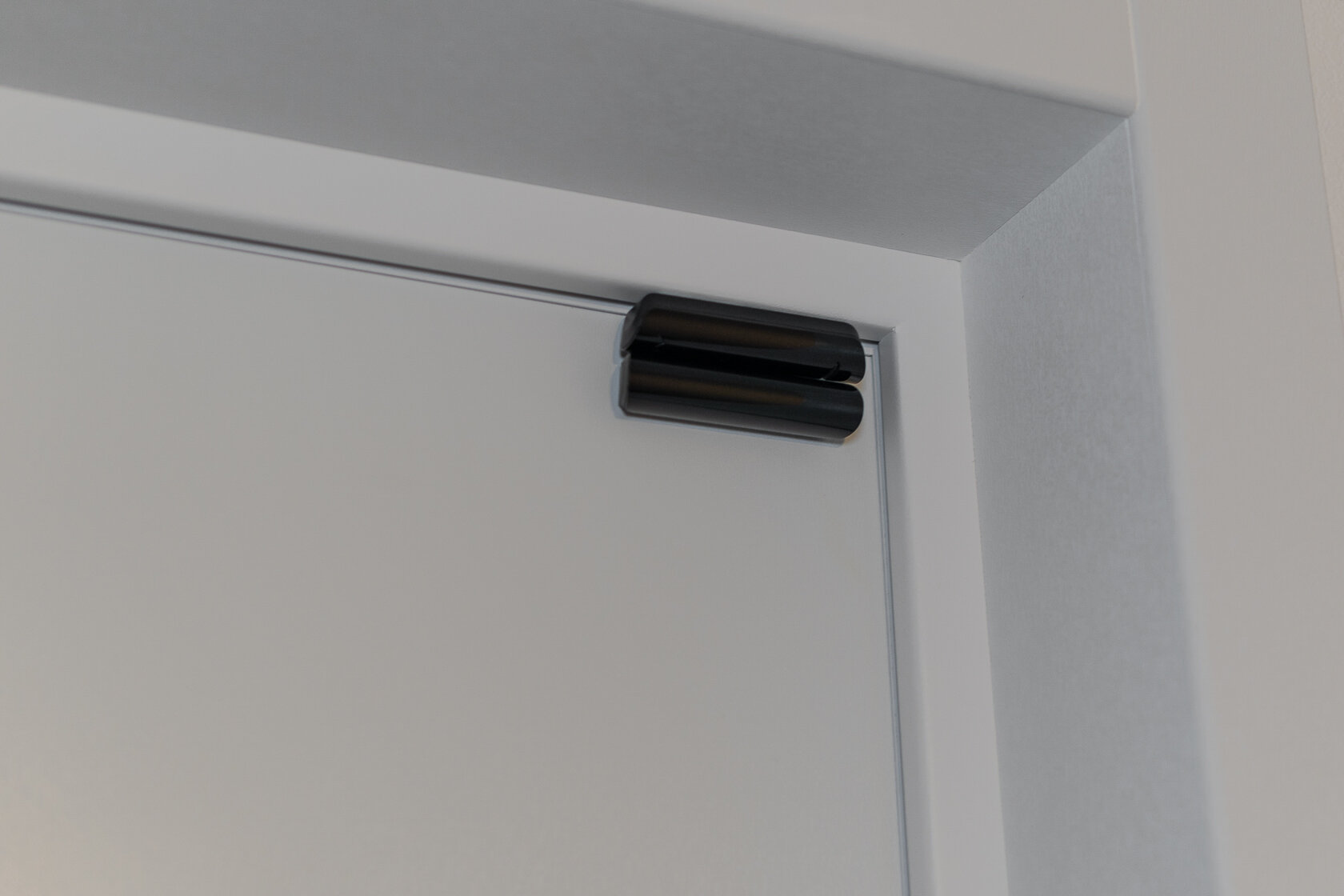 Пришло время оснастить датчиками открытия двери и окна. В моём распоряжении оказался сенсор DoorProtect, реагирующий на размыкание и смыкание двух половинок датчика. Для окон лучше подойдёт DoorProtect Plus, дополнительно определяющий удар и угол наклона. Толщина каждой половинки сравнима с пальчиковой батарейкой, а высота — с двумя мизинчиковыми. На мой взгляд датчик крупноват и сразу бросается в глаза. Это не проблема для входной двери, а установить DoorProtect Plus незаметно на окне едва ли выйдет.