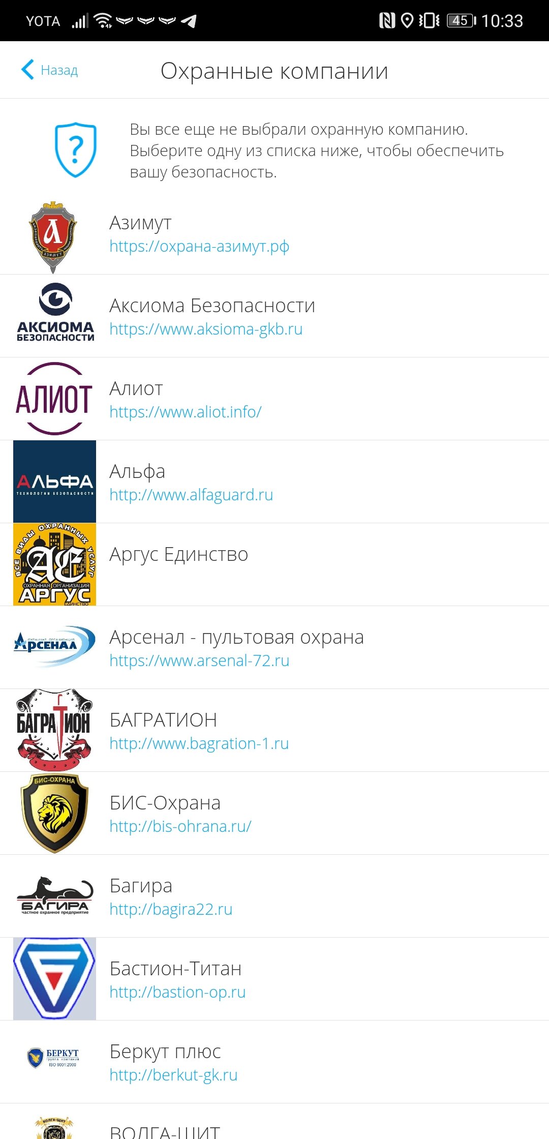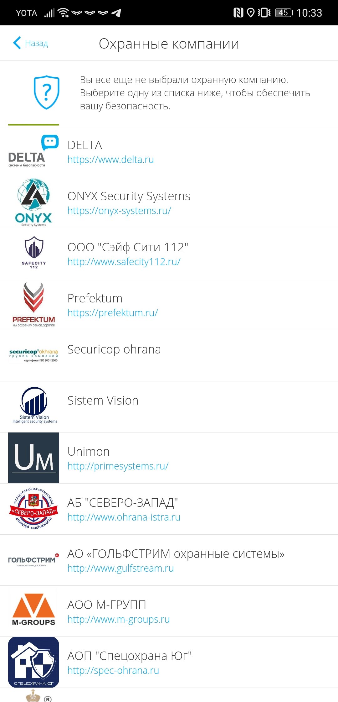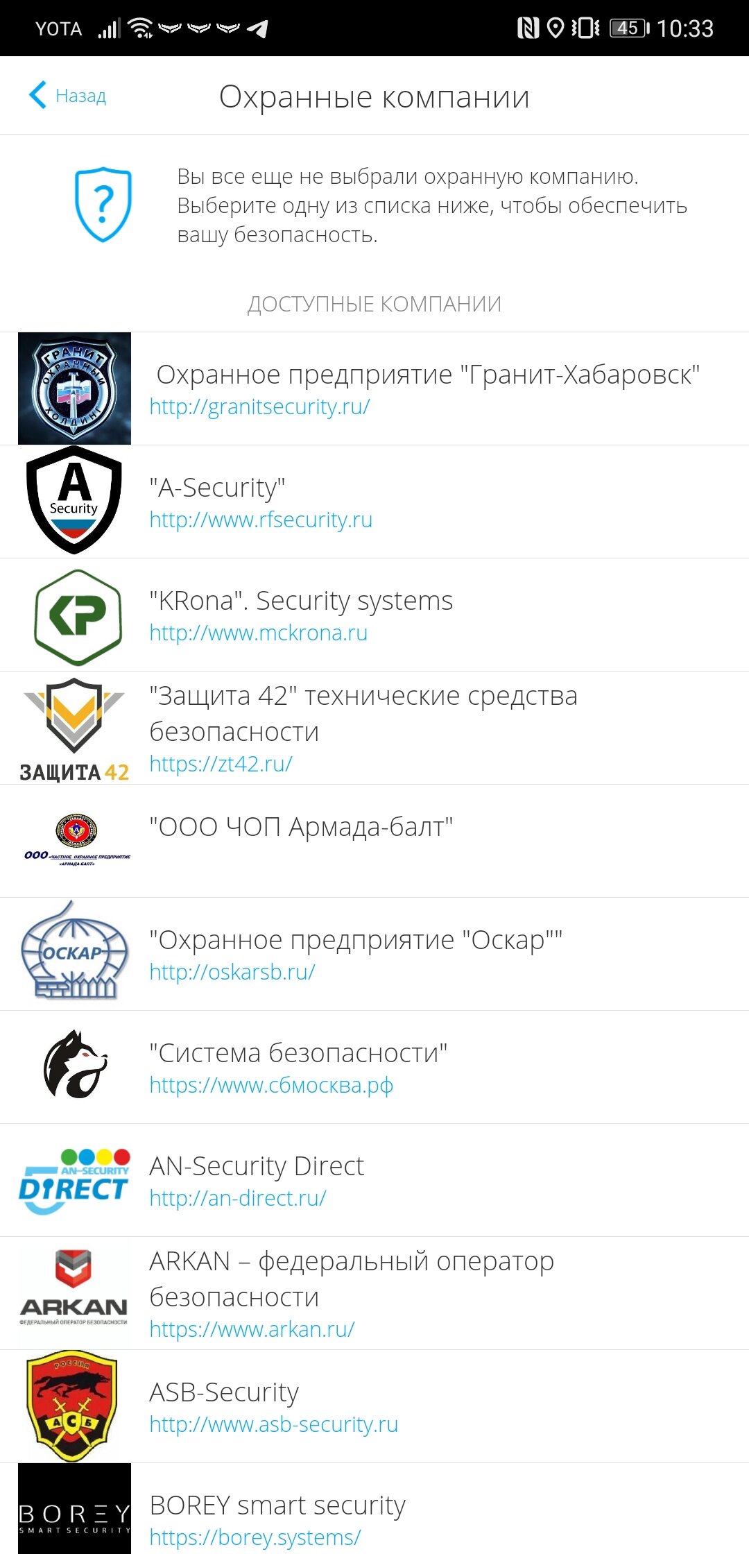 Одна из базовых функций — возможность подключения к охранной службе, которая сможет оперативно прибыть в случае тревоги. В списке партнёров более 300 компаний по всей России, включая регионы и небольшие города.