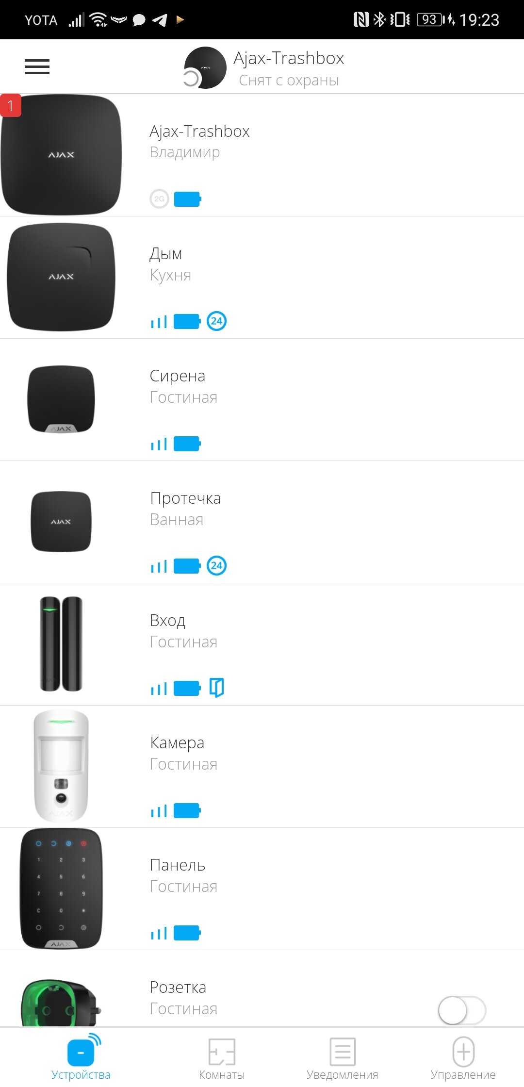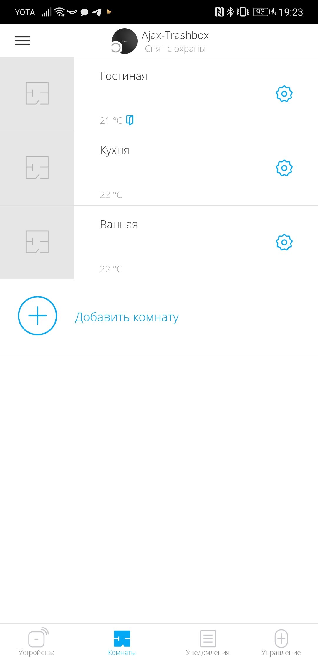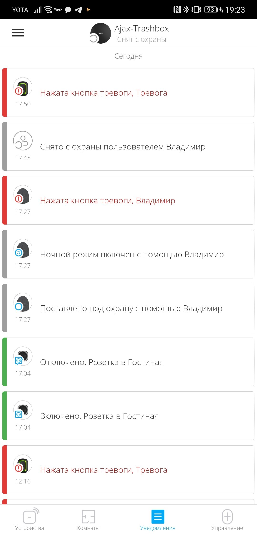 Контроль охранной системы выполняется через приложение для Android, iOS или ПК. Интерфейс прост в освоении: на первой странице собраны все устройства с настройками, на второй — сводная информация по комнатам, а на третьей — все оповещения. Русификация интерфейса и всех прилагающихся инструкций на высочайшем уровне, в отличие от конкурентов из Поднебесной. Приложение работает и присылает оповещения о событиях в любой точке мира, так как связывается с хабом через интернет.