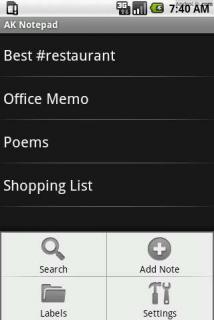 AK Notepad — Можно установить напоминание на основе заметки, отправлять заметки по SMS, e-mail или добавлять ярлык для заметки на рабочий стол.