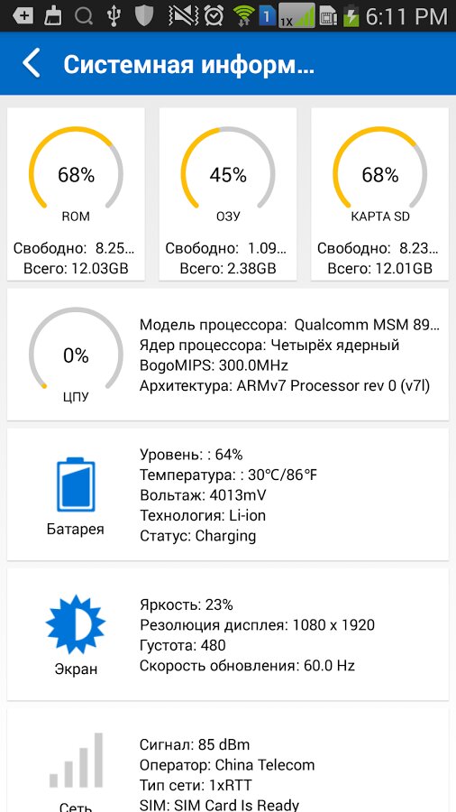 - Предоставляет доклад о состоянии памяти (RAM, ROM, SD карты и CPU)