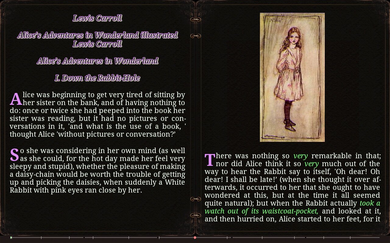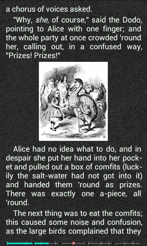 - Переходы по тексту – проценты, страницы, в начало текста, в конец текста, на 10 страниц вперед-назад, на следующую-предыдущую главу.