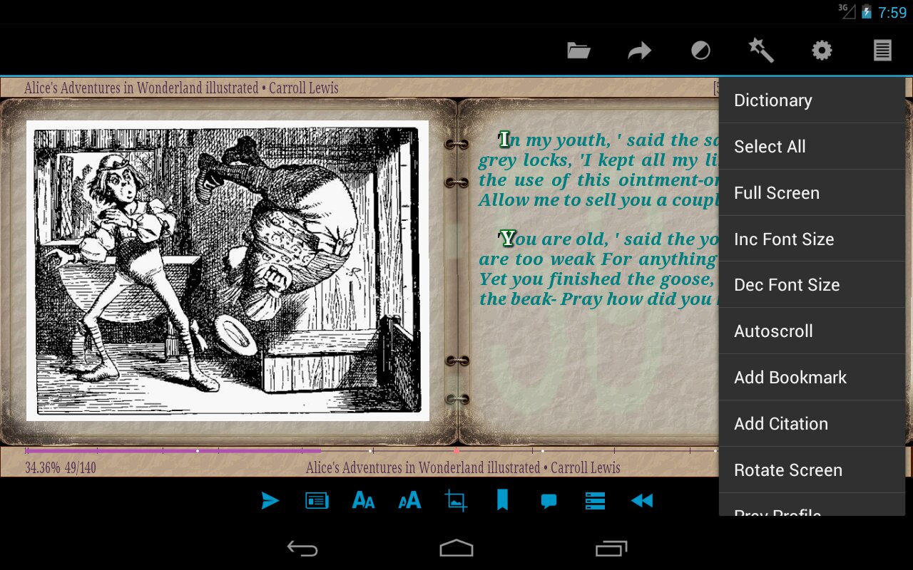Это самая клёвая читалка, на мой взгляд. Можно настроить всё, что хочешь. Перешёл на нее с Moon+ Reader.
