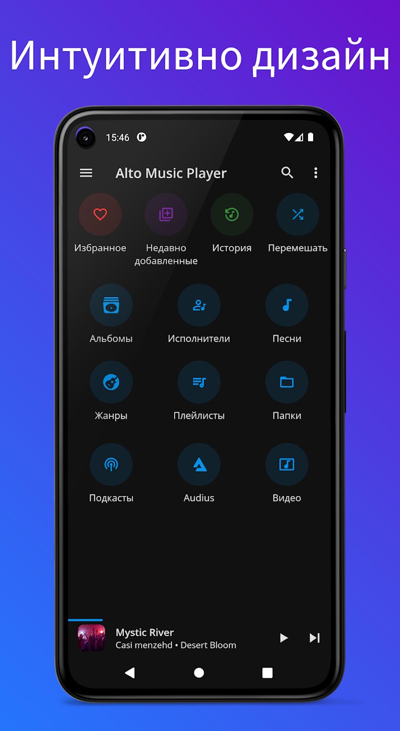 Alto Music — симпатичный плеер для Андроида. Поддержка Android 2.2 и более поздних версий. Это дает вам простой и быстрый доступ к вашей музыкальной коллекции. Важные функции, такие как просмотр песен и управление плейлистами вашей фонотеки. Также поддерживает подкасты, скачивает обложки песен.