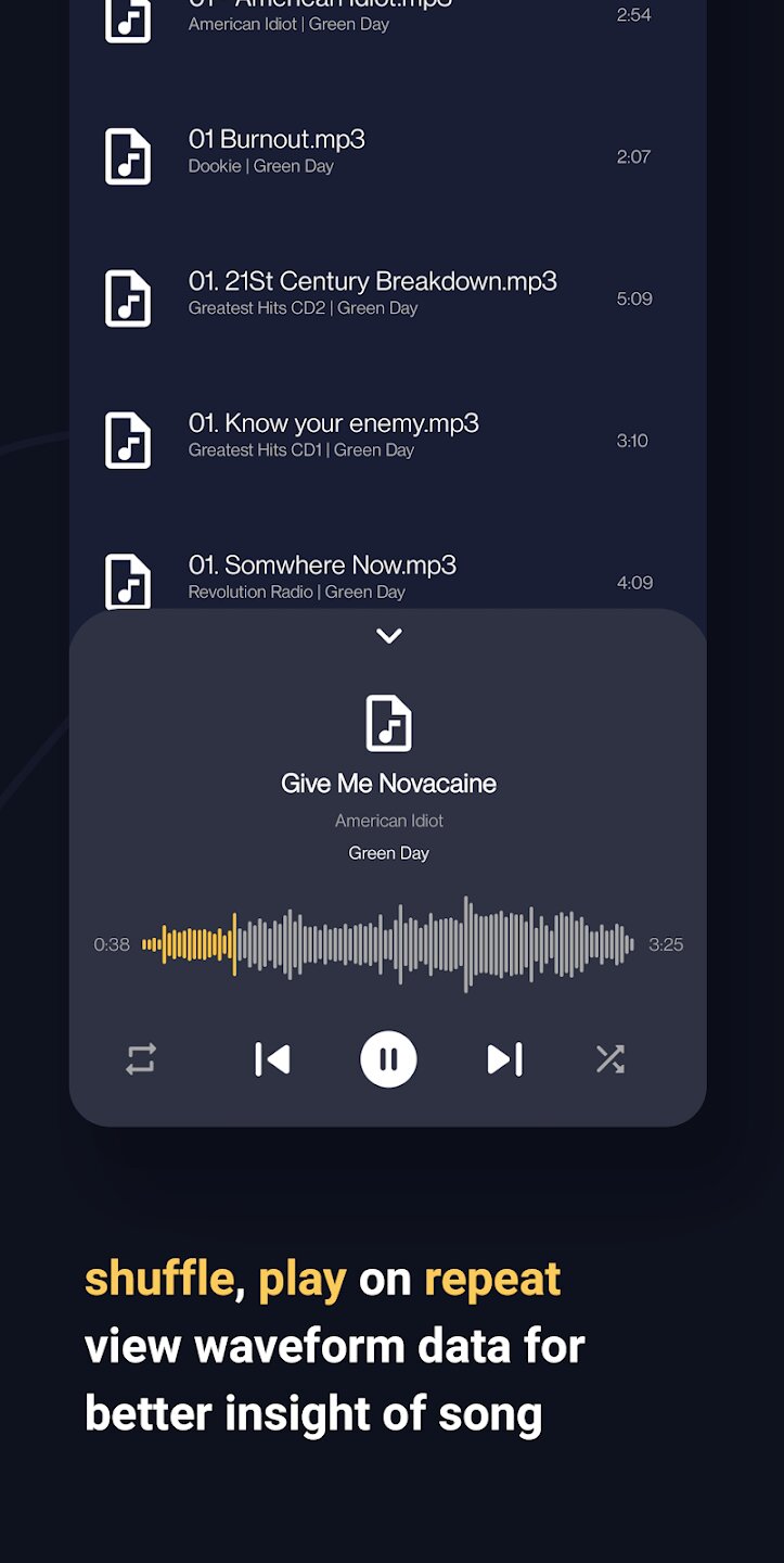 - Встроенный музыкальный плеер с отображением графического сигнала, регулировкой высоты тона и скорости воспроизведения