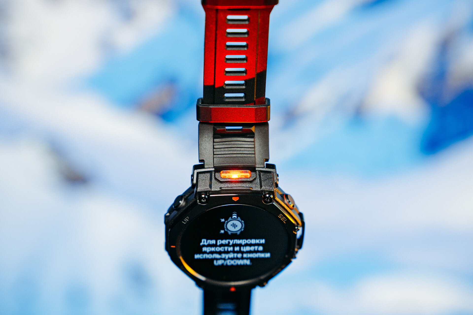 В верхней части корпуса умных часов расположен двухцветный фонарик (есть красные и белые диоды), который оказался крайне практичным решением в повседневной жизни.