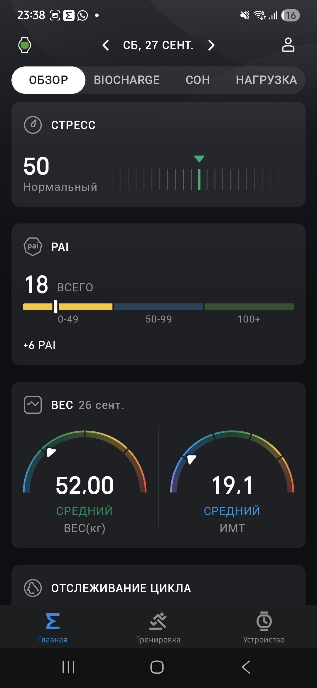 - Здоровье: частота сердечных сокращений, насыщение крови кислородом, уровень стресса, температура кожи.