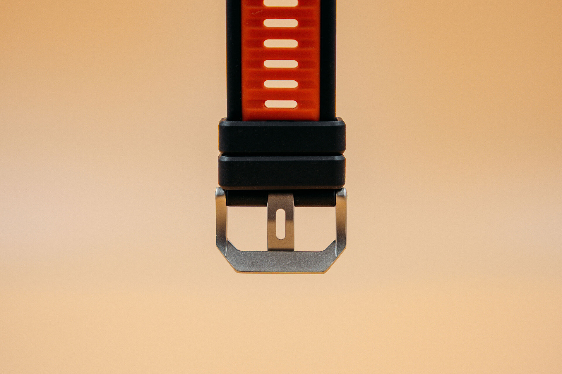Эти смарт-часы доступны в единственном цвете, в комплекте поставляется силиконовый ремешок чёрного цвета с красными отверстиями. Их здесь много, и они плотно расположены один возле другого — это хорошо по двум причинам. Во-первых, всегда получится подобрать комфортную позицию затяжки. Во-вторых, свободные отверстия служат для вентиляции. Застёжка у ремешка металлическая.