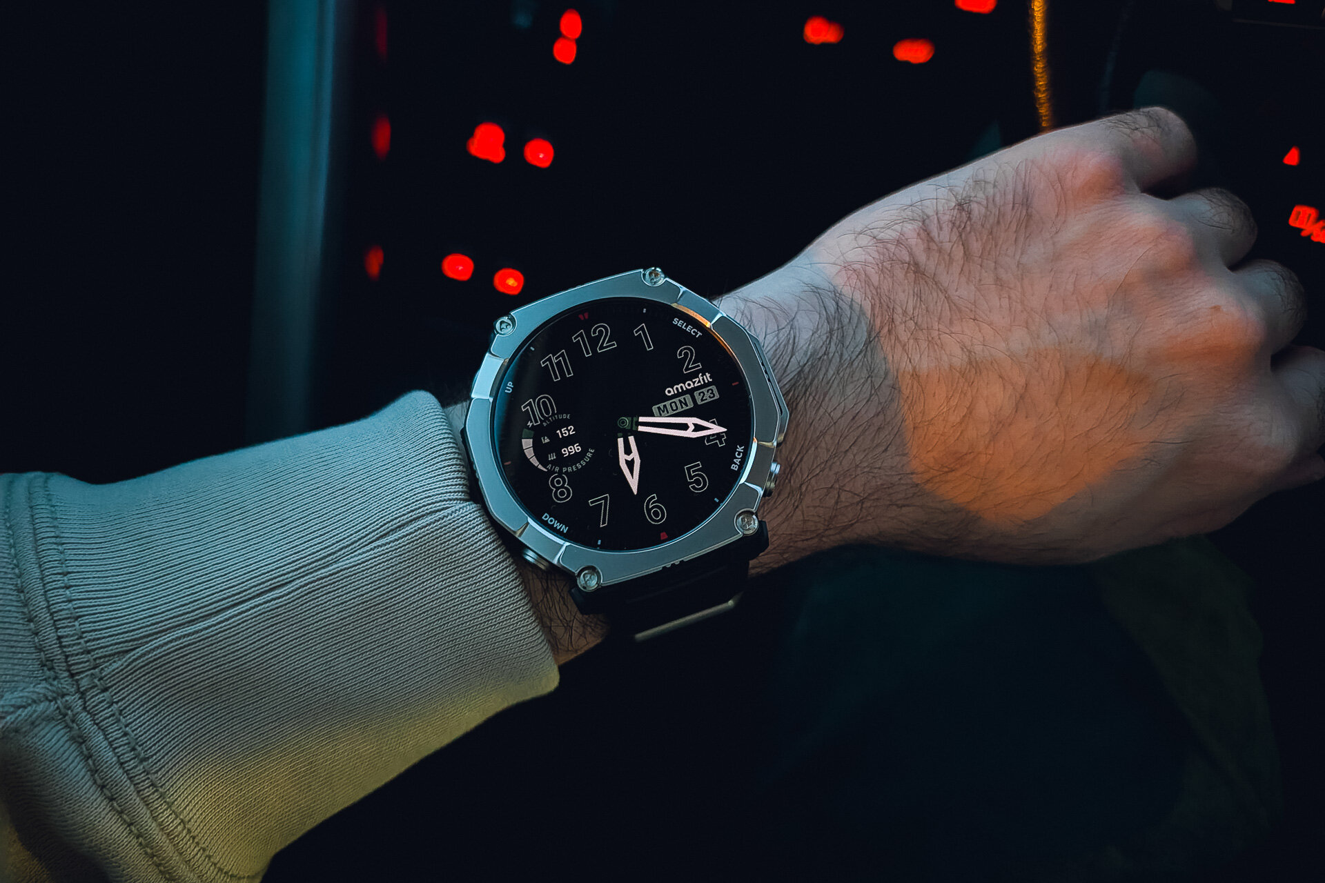 Как и в других моделях T-Rex, здесь реализован отдельный режим ночного экрана — интерфейс стандартного циферблата и меню становится чёрно-зелёным и более тусклым.