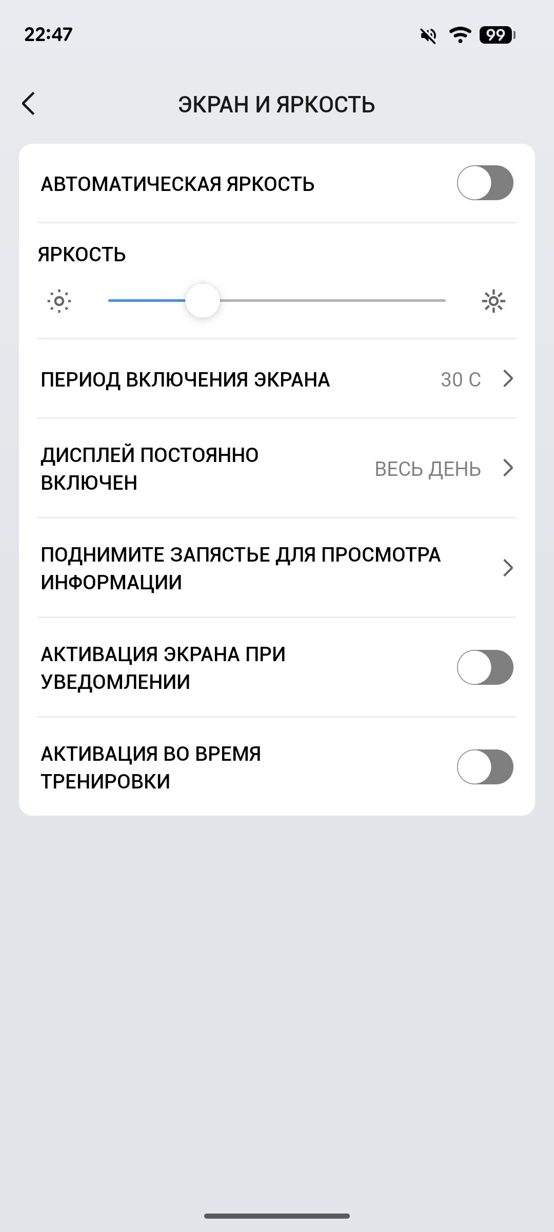 За всё время использования у меня к нему не было никаких вопросов — экран прекрасно считывался как в помещениях, так и на улице, причём даже в яркую солнечную погоду (ещё бы, пиковое значение здесь достигает 3000 нит), функция автояркости отрабатывает хорошо. Конечно, в часах такого уровня реализован режим Always-On Display, отображающий приглушённый циферблат даже в режиме ожидания.
