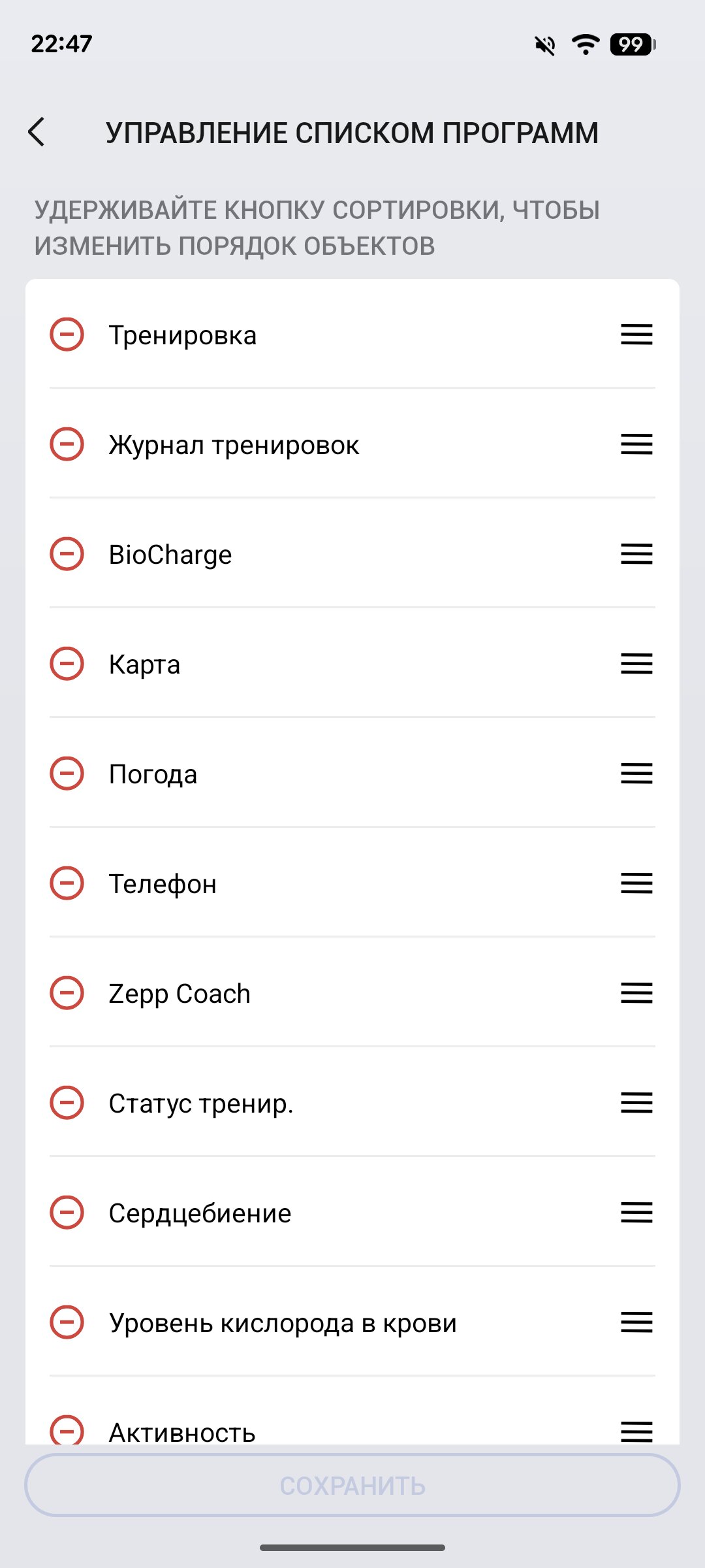 Крайне полезная возможность, которая до сих пор встречается не везде — возможность создать (через Zepp) свои паттерны вибрации под разные приложения. Это крайне удобно, потому что можно сразу понять, из какой игры или программы пришло оповещение, не глядя на экран (который порой скрывается за рукавом, а то и не одним). Часы запоминают паттерны вибрации, сохраняя информацию во встроенную память. Она здесь на 64 ГБ, но пользователю доступно около 26 ГБ. Её можно заполнять сторонними приложениями, музыкой и офлайн-картами, и свободного объёма хранилища хватает на всё, как говорится, с головой.
