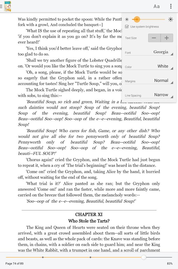 - Настройка вашего чтения(Выберите нужный размер шрифта, яркость экрана, цвет фона, и ориентацию (книжная или альбомная)чтоби читать ваши книги.);