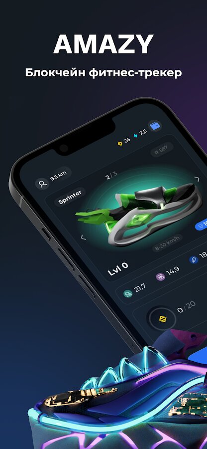 AMAZY — мотивирующее приложение с элементами игры. Ты надеваешь стильные 3D-кроссовки, выходишь на прогулку или пробежку и получаешь внутриигровые токены.