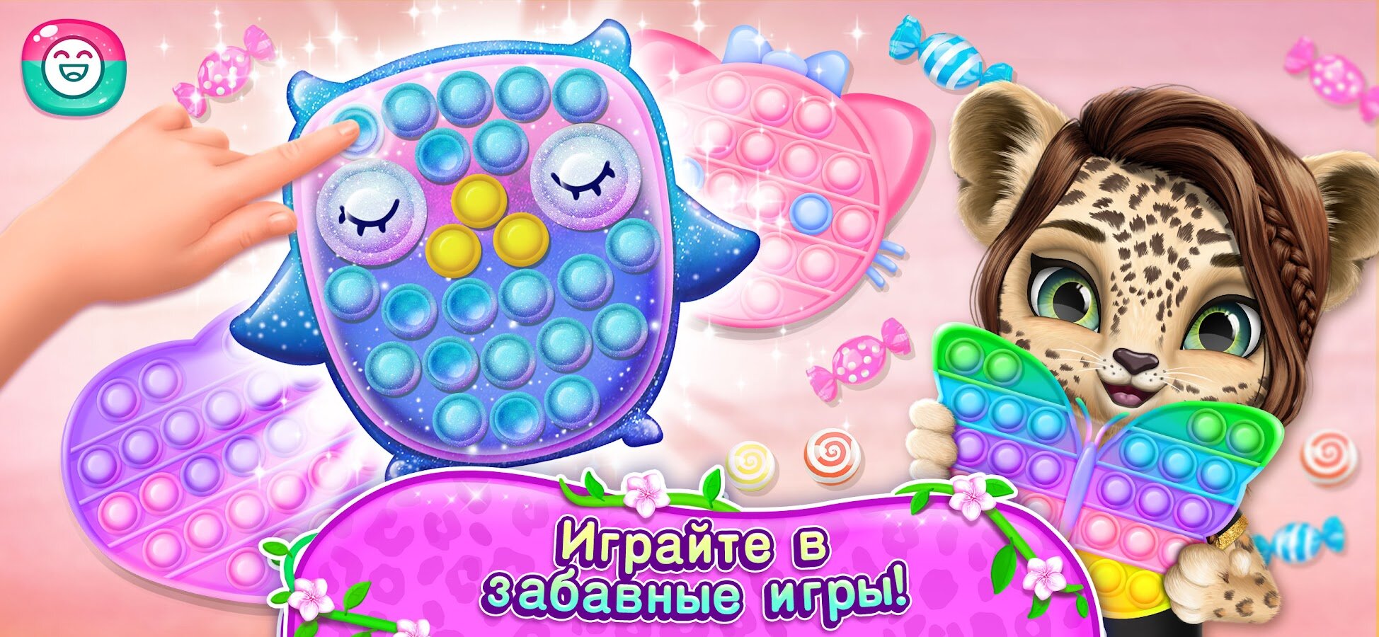 - РАСТИТЕ ВМЕСТЕ СО СВОЕЙ ПОДРУЖКОЙ ЭМИ. Играть с очаровательным леопардом так весело! Играйте, заботьтесь друг о друге, выбирайте красивую одежду и наряжайтесь в чудесном доме вместе с экзотической подружкой!