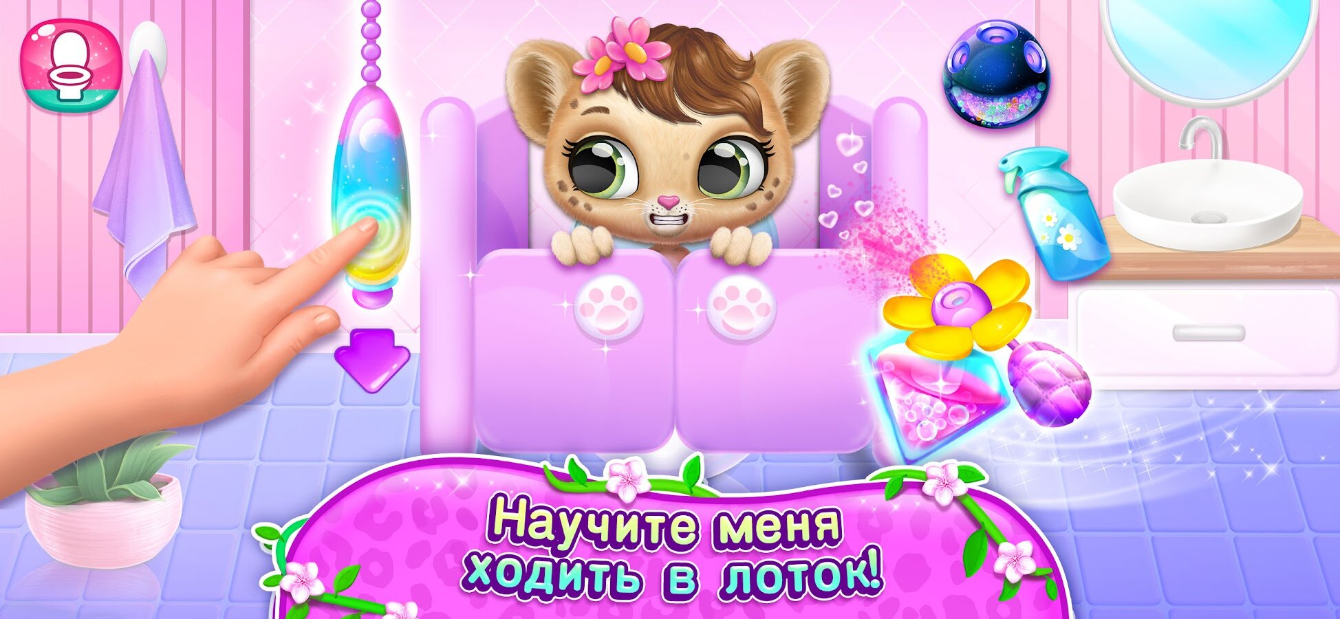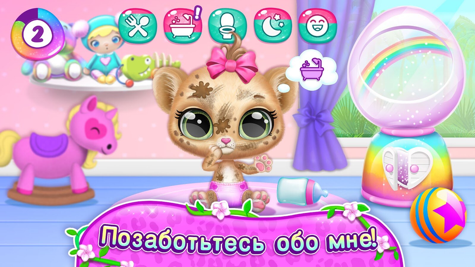 Приветствуем в домике Эми! Экзотическому зверьку нужна любовь, забота и внимание! Вырастите чудесного взрослого зверя из маленького леопарда: играйте с Эми, заботьтесь о ней, кормите, купайте и наряжайте!
