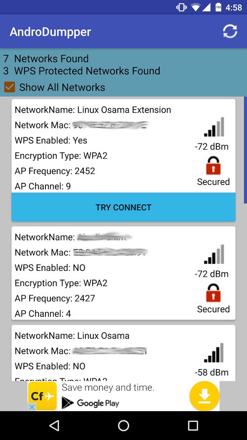 Главная функция приложения AndroDumpper состоит в проверке и определении уязвимости WPS. Установив данное приложение, вы сможете тестировать обнаруженные сети мгновенно, в автоматическом режиме. Программа будет самостоятельно сканировать выбранную сеть и пытаться распознавать PIN-код к WPS.