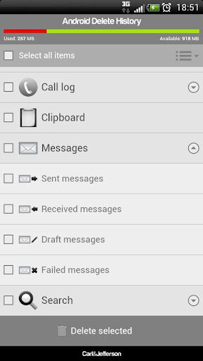 Android Delete History похожа на CCleaner для ПК или на History Eraser.