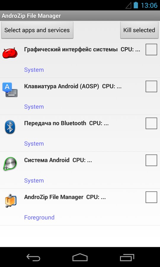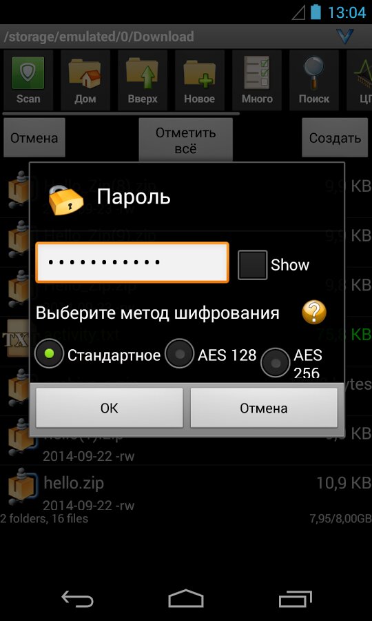 Возможности приложения Файловый менеджер AndroZip:
