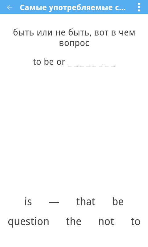 Я уверен, что в приложении «Английский плюс» каждый из вас сможет найти для себя что-то интересное… Новичок выучит тысячу наиболее употребляемых слов (включив для начала вывод транскрипции на русском), уже имеющий элементарную базу расширит свои знания, поработав с фразовыми глаголами, предложениями из упражнений, идиомами и пословицами, а знаток испытает свои силы в цитатах. Кстати, в пословицах и цитатах русский перевод иногда несколько отличается от дословного (видимо народ в ходе употребления пообтесал), но с другой стороны так отгадывать еще интереснее.