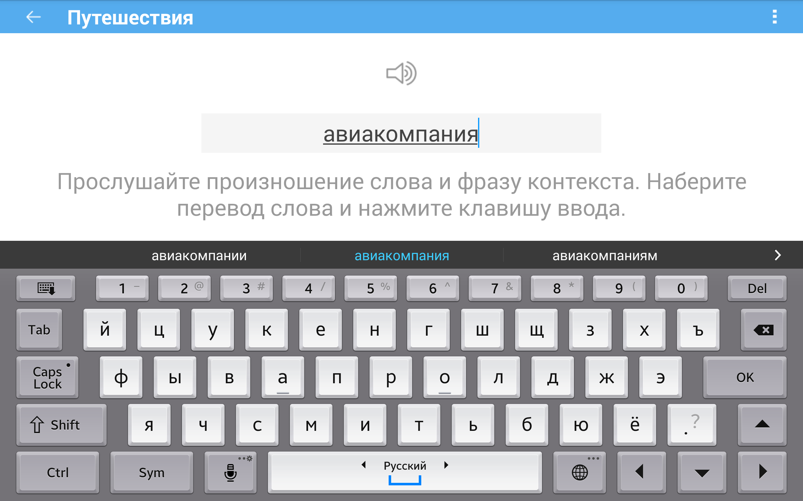 После того, как я посмотрел небезызвестную программу «Полиглот» на телеканале «Культура» и выучил таблицу использования глаголов, мне захотелось иметь некий инструмент, позволяющий, как выразился замечательный Дмитрий Петров, «нанизывать бусинки на ниточку» т.е. расширять свой словарный запас, тренировать построение предложений, восприятие английской речи на слух. Причем, в отличие от уже существующих на маркете приложений, мне хотелось иметь что-то простое, легкое и вместе с тем эффективное, включающее в себя хороший запас встроенного учебного материала и возможность его свободного расширения. Также, в отличие от кучи всяких запоминалок, я понимал, что новые слова необходимо учить исключительно в контексте т.е. представлять себе какую-то конкретную ситуацию, рисовать мысленную картинку и делать ее объемной.