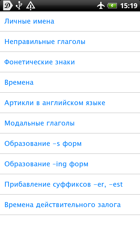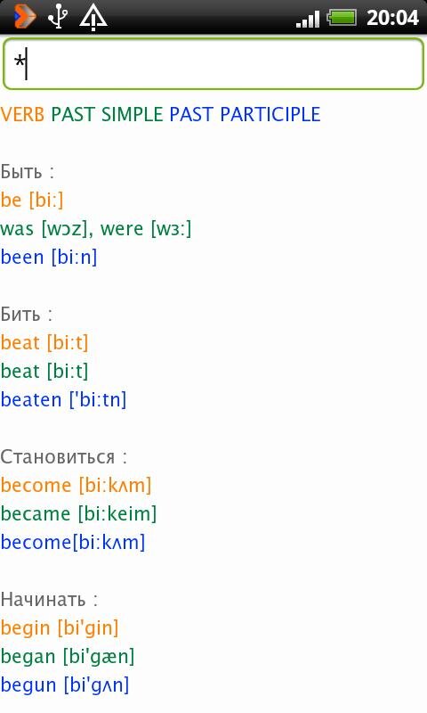 - список неправильных глаголов (весь список выводится на *) (в версии 2.2 Pro)