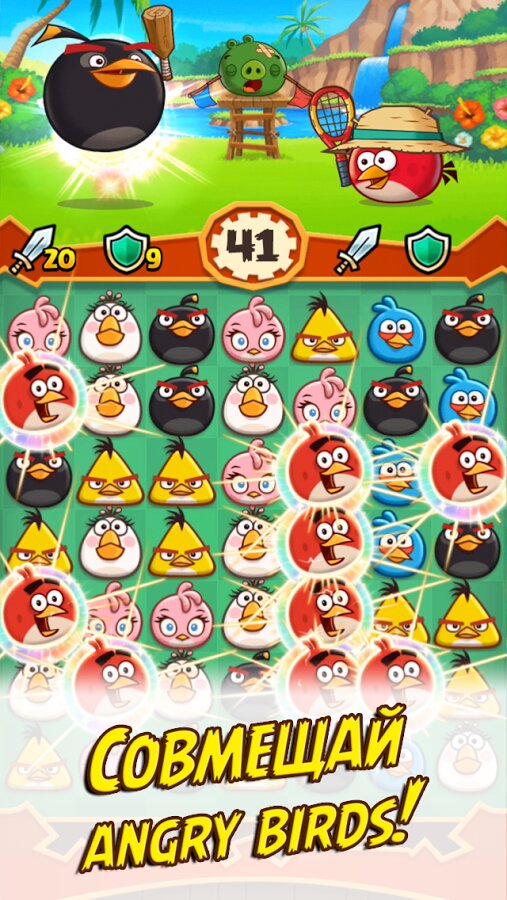 Angry Birds Fight! выполнена в крайне популярном сегодня жанре «три в ряд», где знакомую механику сбора цепочек элементов дополнили составляющей экшена. Однако ключевой особенностью игры является нацеленность на мультиплеер. Все игроки будут сражаться между друг другом, собирая комбинации из птиц.