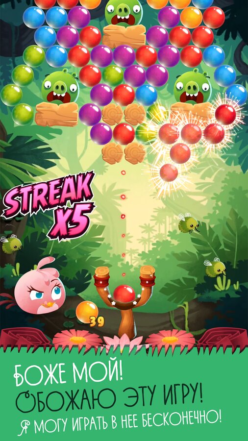 Angry Birds POP Bubble Shooter — стрельба по пузырькам в новом захватывающей головоломке! Используй рогатку, чтобы совмещать и взрывать пузырьки, спасать экзотических зверьков и победить свиней. Простой игровой процесс с элементами стратегии позволит тебе с радостью лопать пузыри!