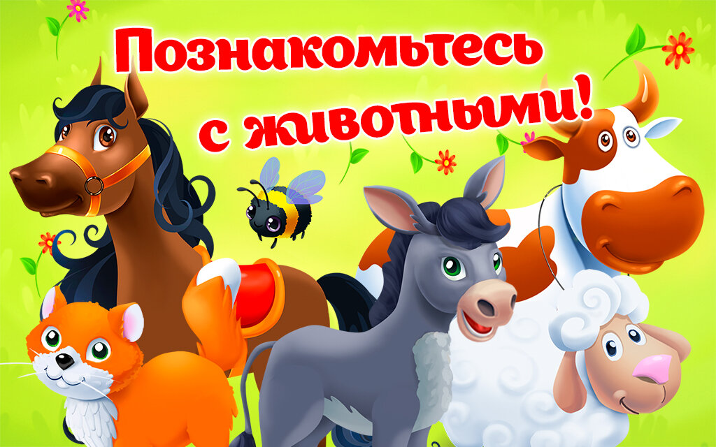 В этой бесплатной познавательной игре про животных малыш знакомится с их нравами, что будет полезным в реальной жизни. Лошадка, курочки, корова, свинки и лохматый пёс — в вашем гаджете настоящие животные для детей.