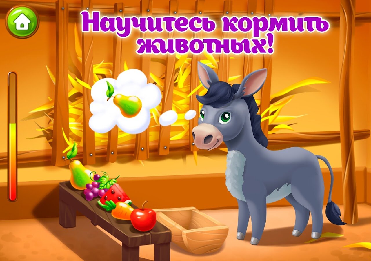 Игры для самых маленьких «Животные для детей» выполняют функцию развивашки. Ферма для детей помогает обучить малыша вниманию, реакции, моторным навыкам и познакомить с основами сельского хозяйства, научить ухаживать за животными. И повеселиться с ухоженными и счастливыми зверями.