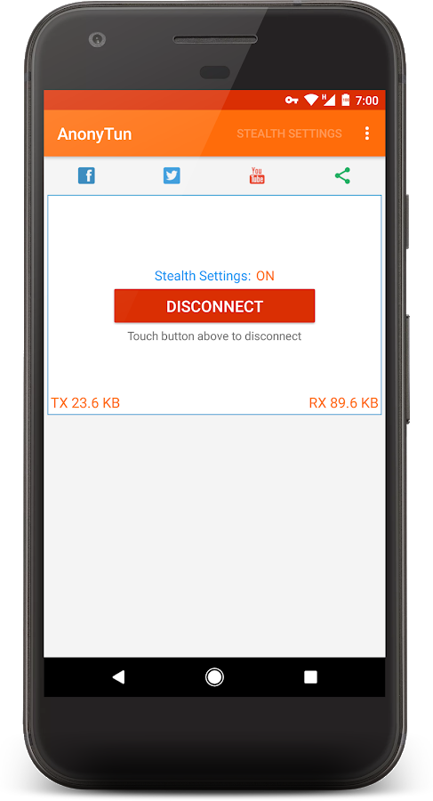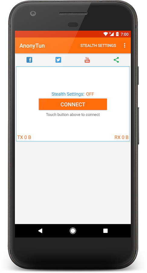 AnonyTun — очень легко использовать, нажатием на кнопку вы подключаетесь к виртуальной сети в безопасной точке планеты, и обходите все преграды в вашем регионе. После преодоления локальных ограничений, ни что не помешает вам беспроблемно открыть любой веб-сайт или контент, который доходил до вас в урезанном виде. Когда закончите безопасный просмотр сайтов, просто нажмите на кнопку ещё раз, чтобы автоматически вернуться в свою обычную сеть.