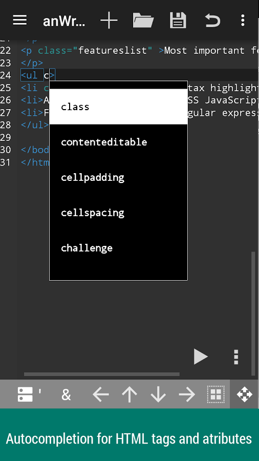 anWriter — редактор, который помогает вам писать код. Поддерживает автодополнение для языков HTML, CSS и JavaScript, (PHP, SQL в полной версии).