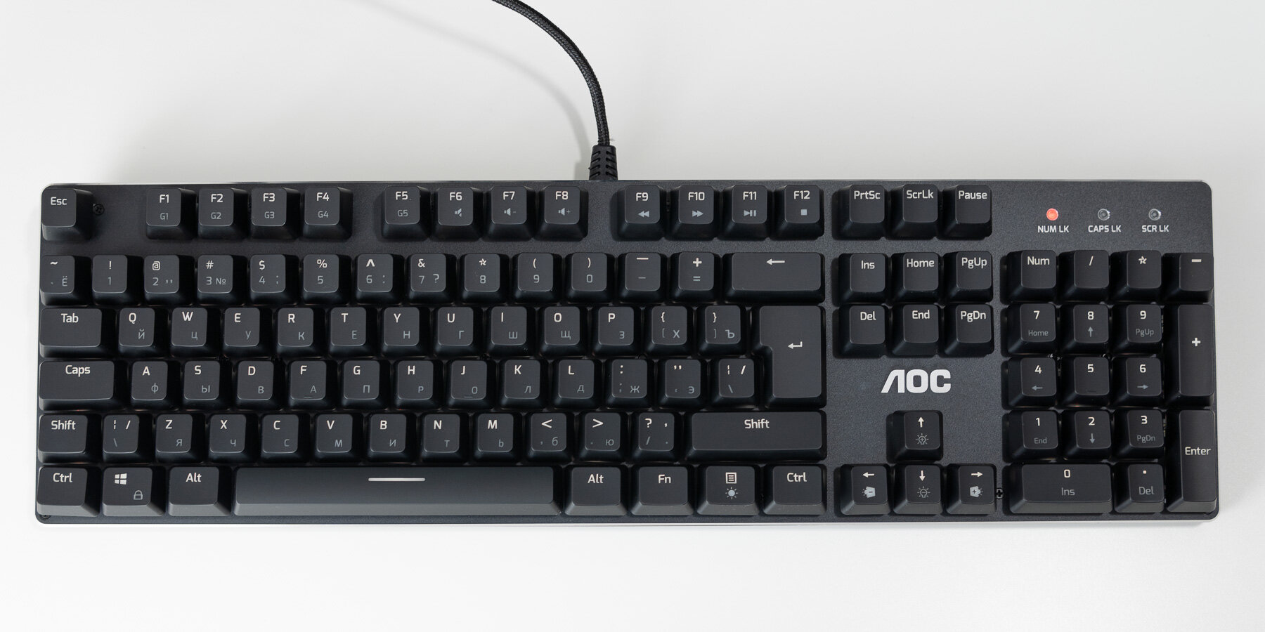 Дебют AOC на рынке игровой периферии можно считать успешным! У компании получилась качественная механическая клавиатура с нечасто встречающимися тактильными переключателями за относительно небольшие 6 тысяч рублей. В числе заметных недостатков — только неравномерная подсветка, которая является особенностью всех клавиатур с подобными переключателями. На фоне других моделей может не понравиться отсутствие отдельного индикатора игрового режима, но это мелочь.