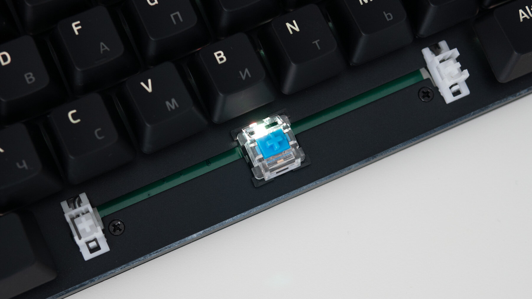 Для длинных клавиш используются Cherry-подобные стабилизаторы, которые отлично справляются со своей задачей. Тяги спрятаны под фронтальной панелью, поэтому переживать за их сохранность не приходится.