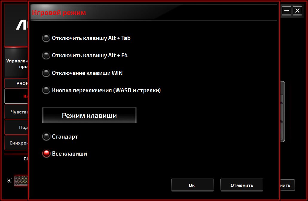 Блокируемые клавиши и сочетания в игровом режиме настраиваются через фирменную утилиту.