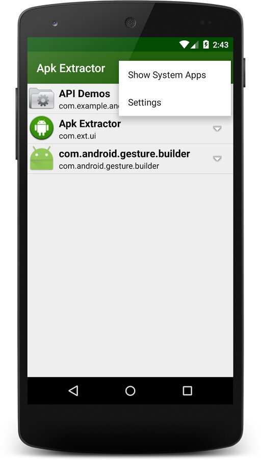 APK Extractor — бесплатная и простая в использовании утилита для Android, с помощью которой можно быстро и легко извлекать файлы .apk из установленных на устройстве приложений (в том числе и системных) и сохранять их на карте памяти или делиться с друзьями. К достоинствам программы также стоит отнести то, что она не требует от пользователя наличия прав суперпользователя. Имеется функция поиска по приложениям.