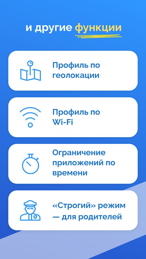 - Блокировка уведомлений, предупреждений и напоминаний.