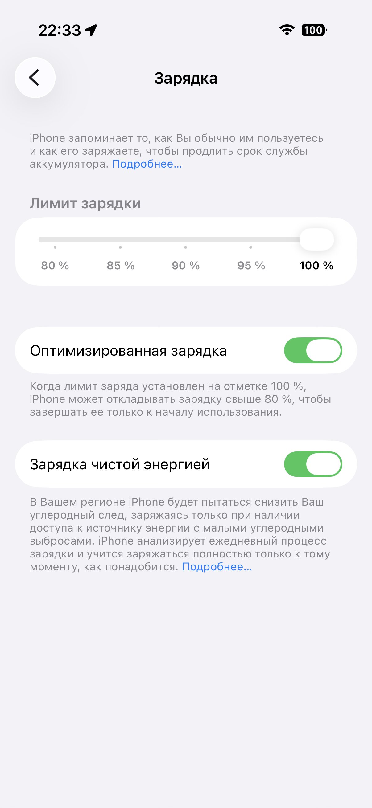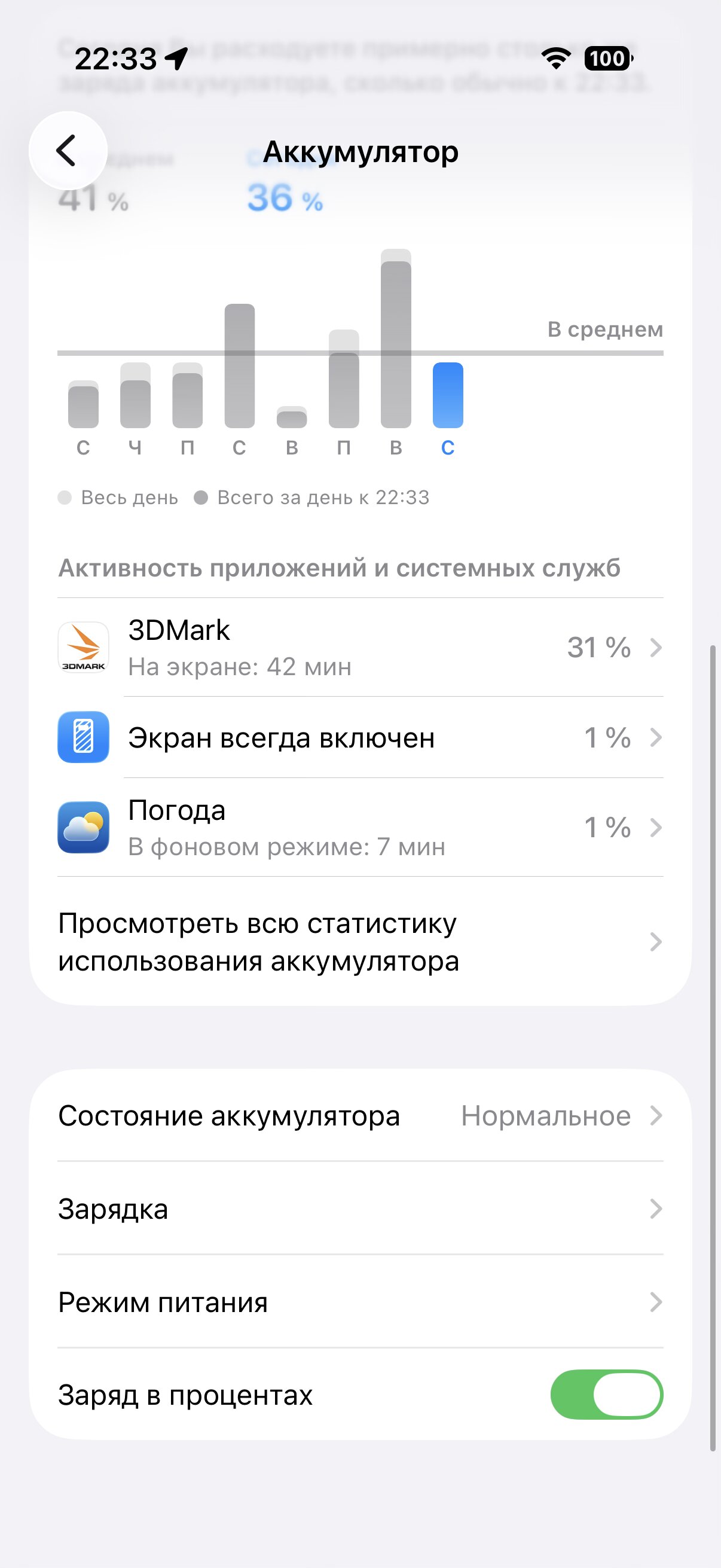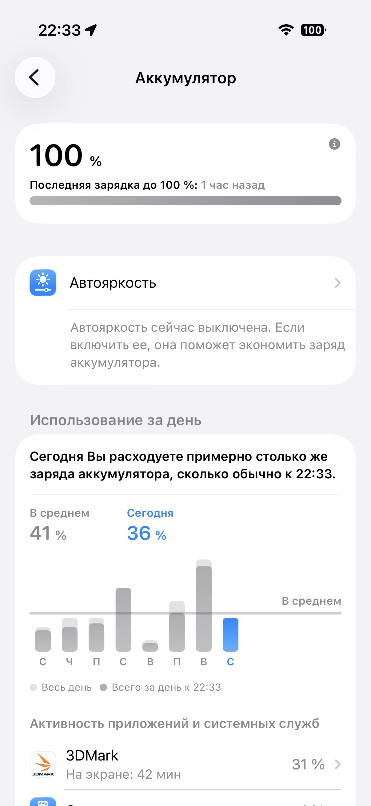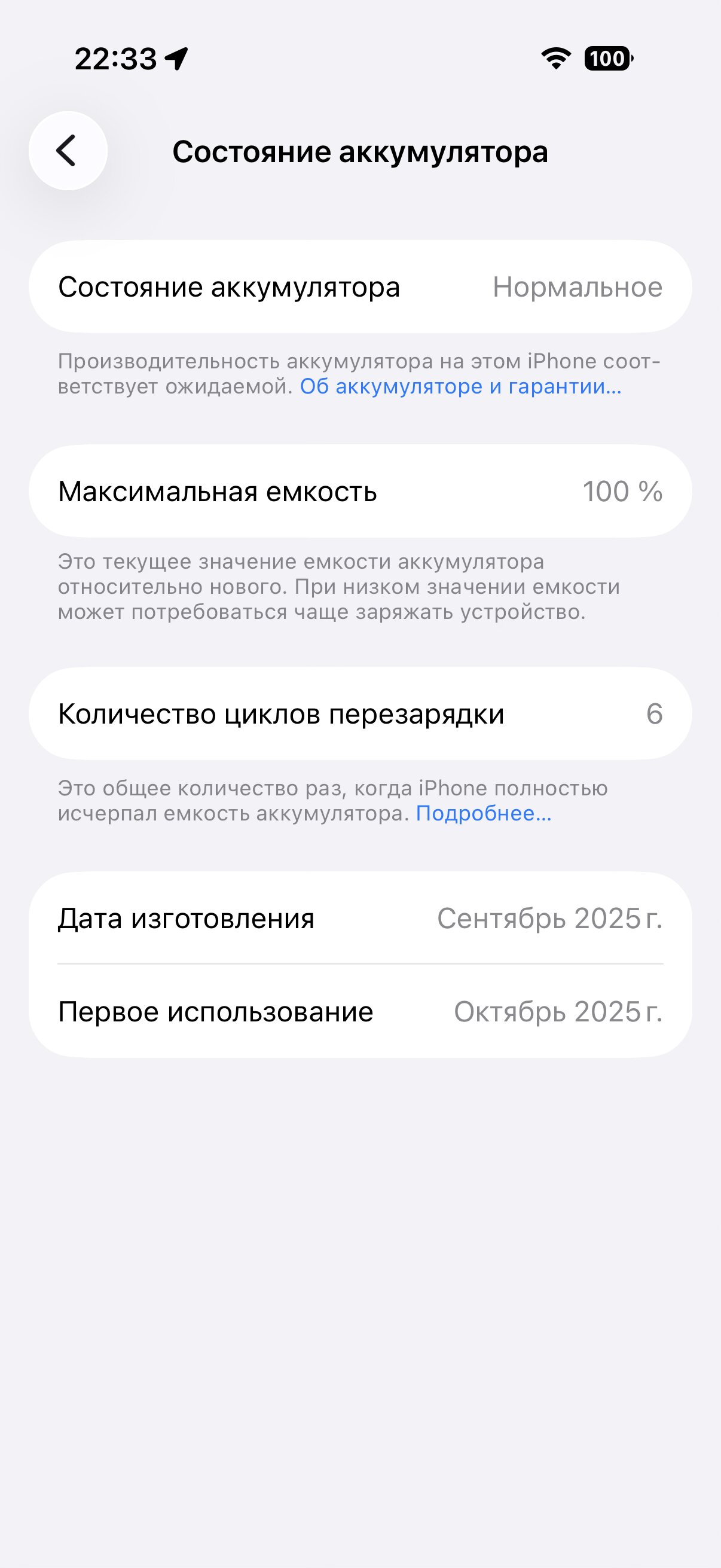 Компания Apple в каждом поколении пытается увеличить время автономной работы своих устройств и iPhone не является исключением. Прошлогодний iPhone 16 Pro должен был работать до 27 часов в режиме показа видео, а новенький iPhone 17 Pro уже целых 33 часа. Хочется верить, что Apple работает над софтовой частью, но самое важное, конечно же — это емкость аккумулятора. В этом году она снова увеличилась и теперь составляет 3988 мА·ч для обычной версии с физической сим-картой, или же целых 4252 мА·ч, если смартфон только с eSim, как у меня.