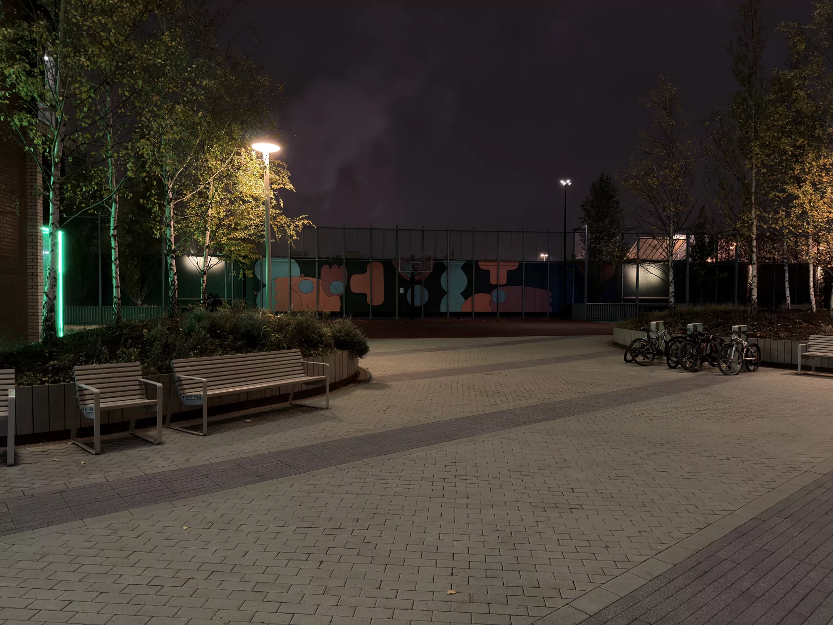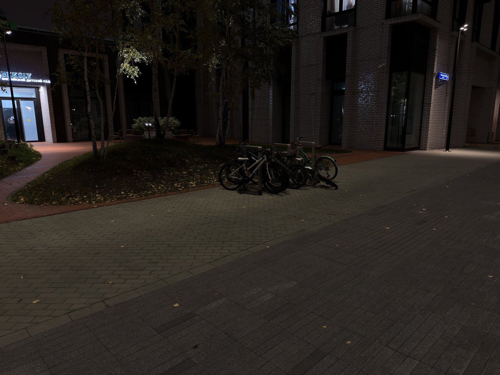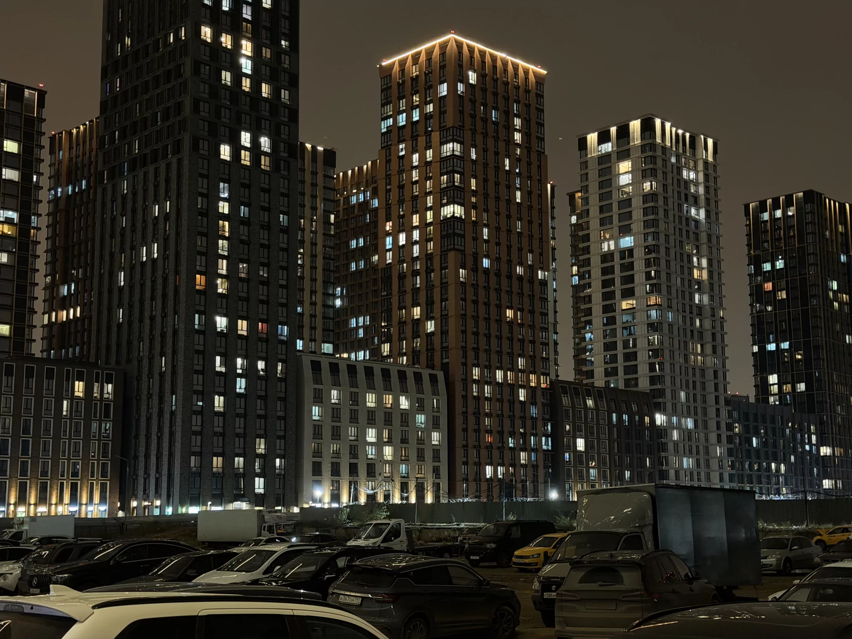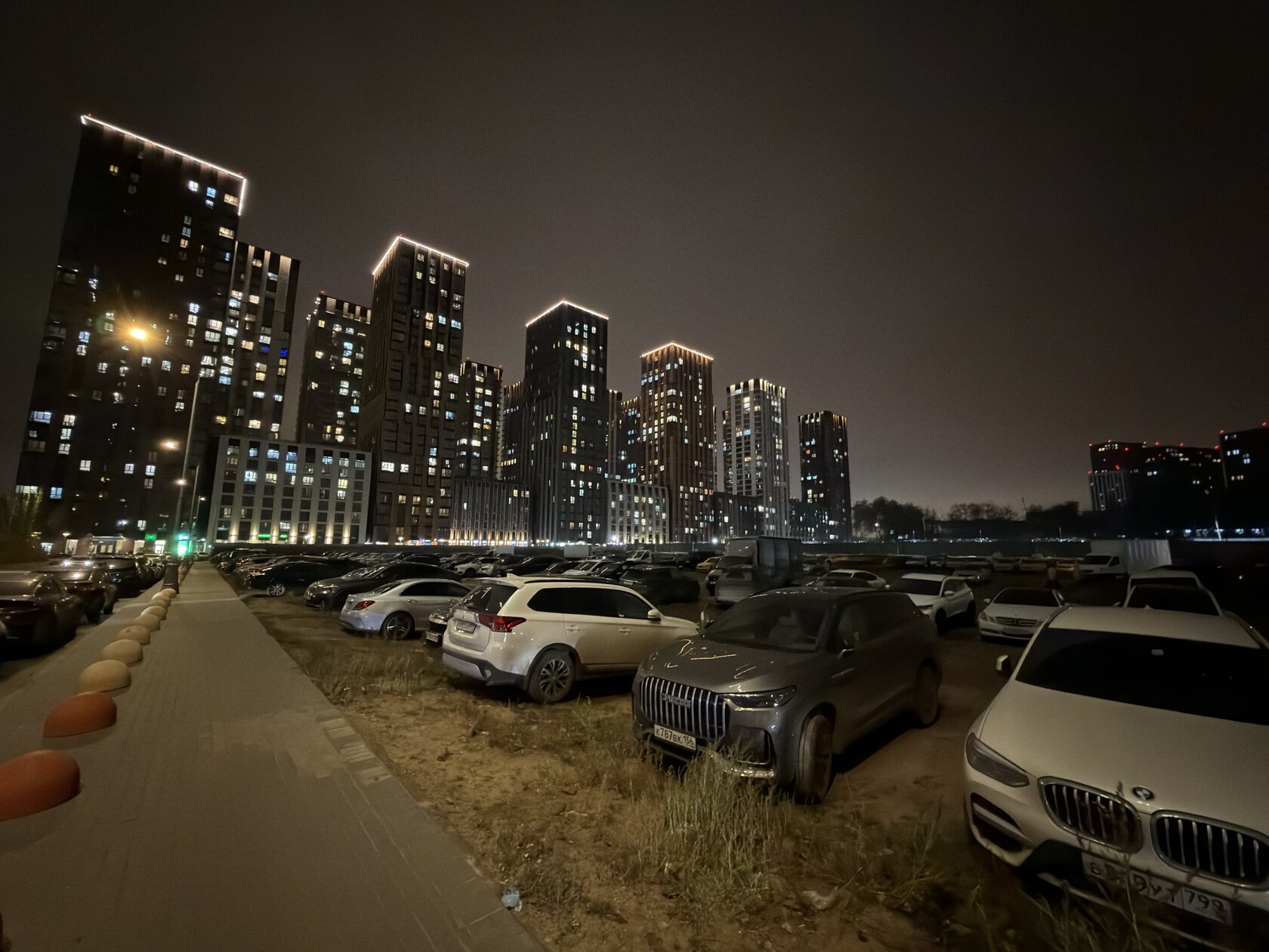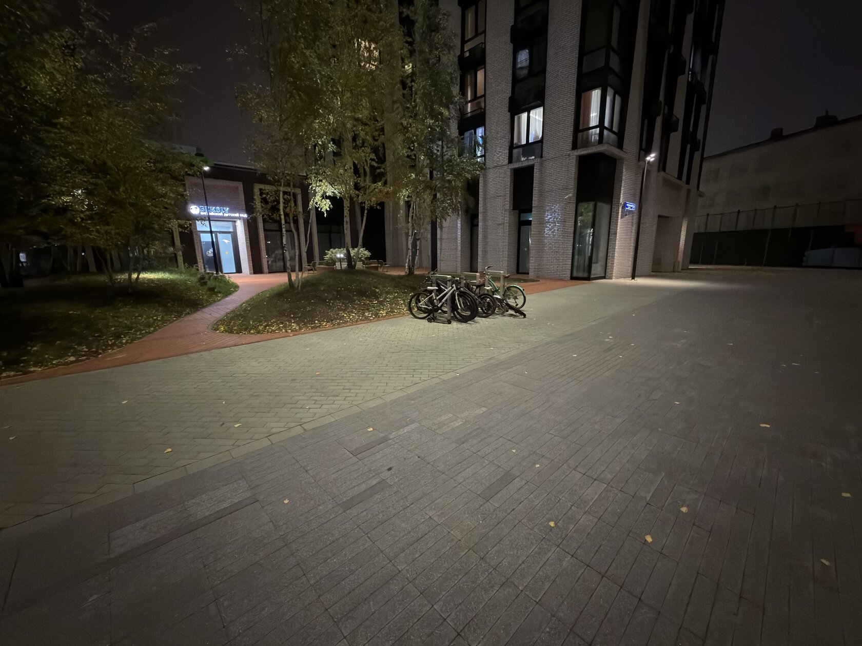 Есть еще один момент, который я поймал совершенно случайно. Новый телевик, который в этом году полностью обновился, очень плохо фокусируется, если фотографировать ночью через стекло. Я предполагаю, что камера видит небольшие блики на стекле и начинает теряться, потому что простое открытие окна исправляет ситуацию. Ниже будет два фото для примера.