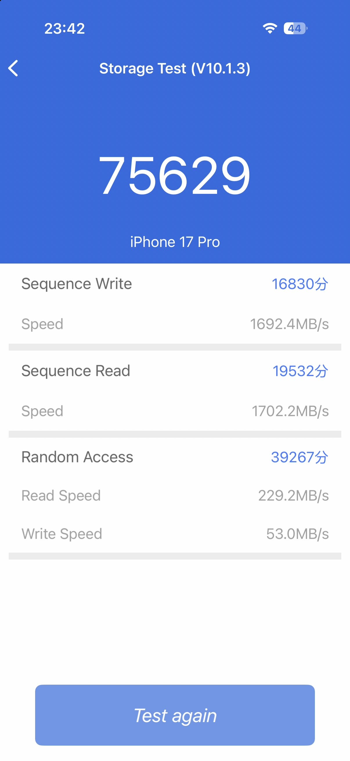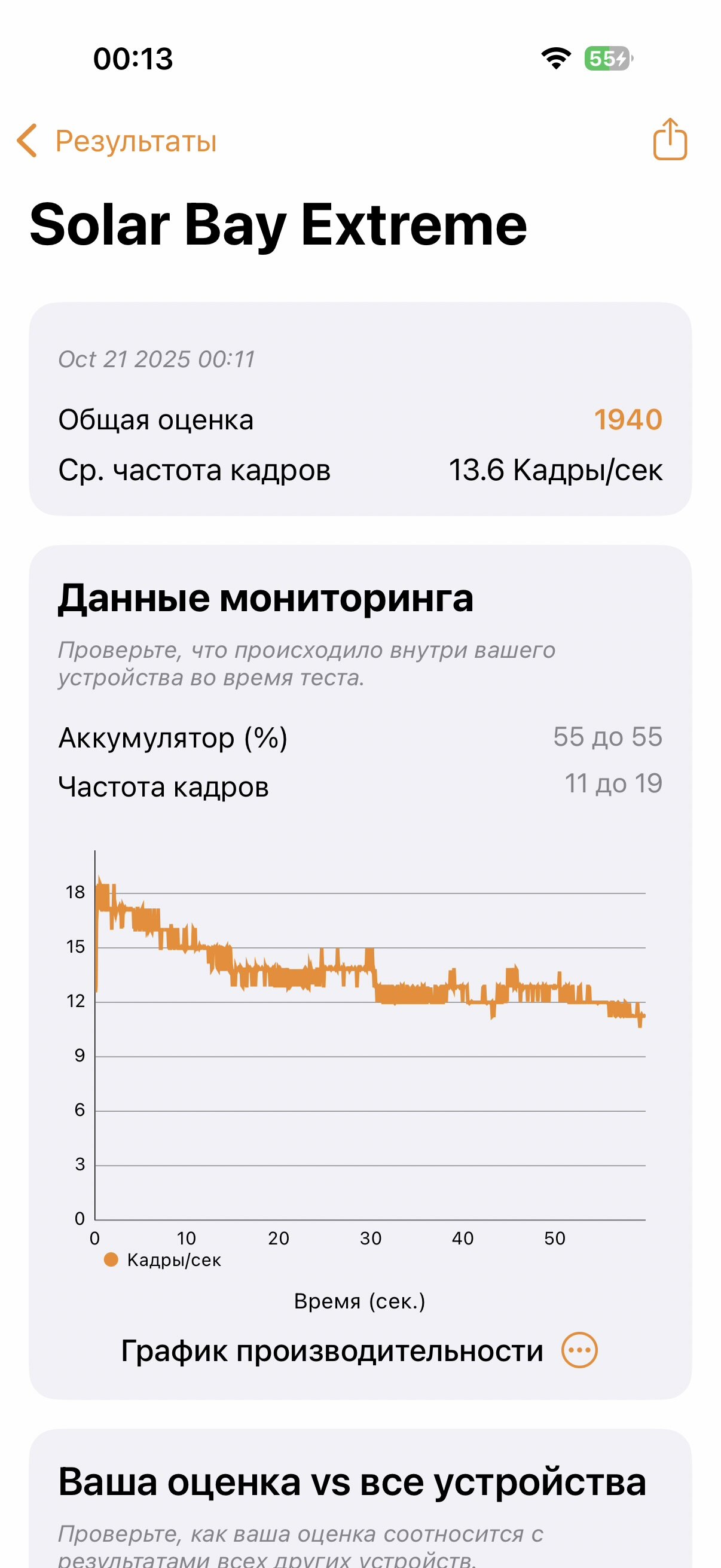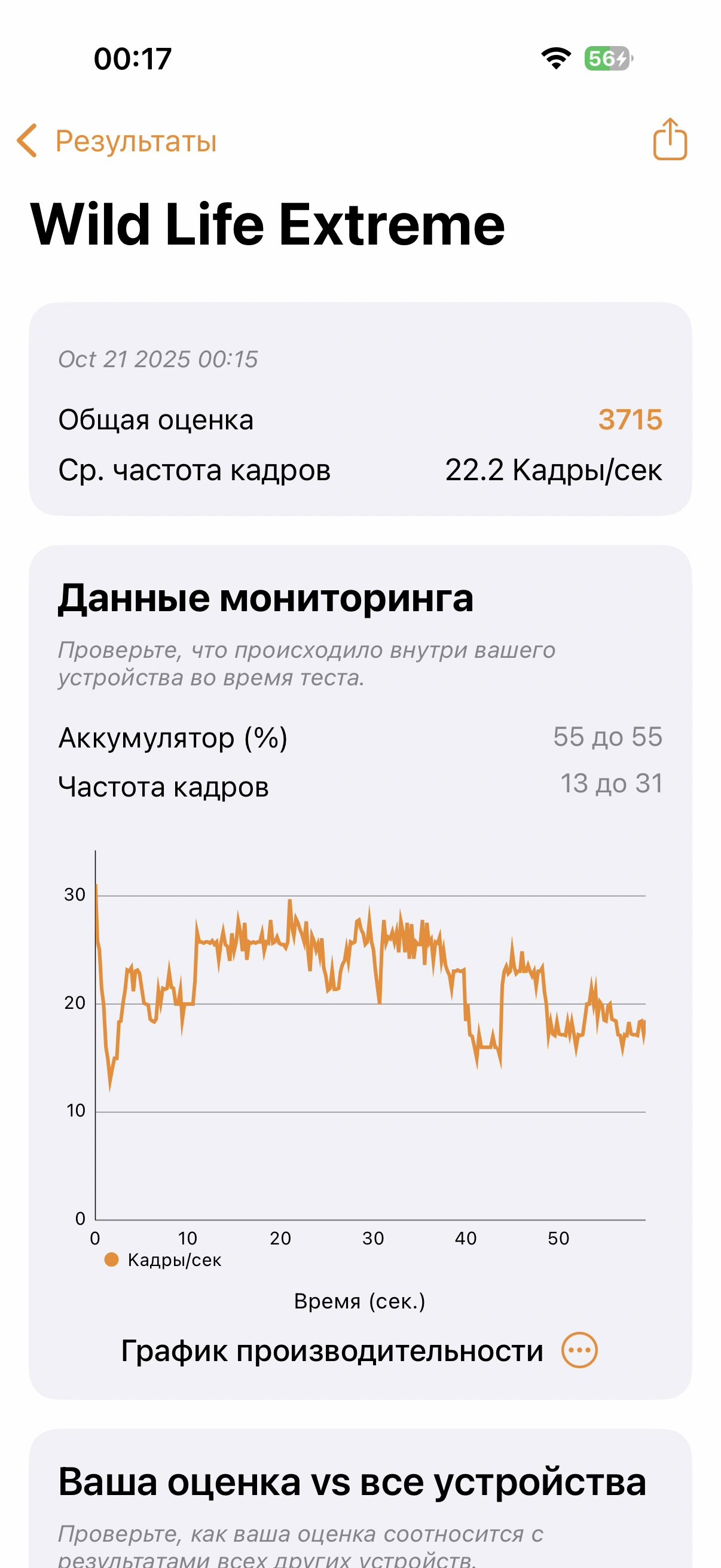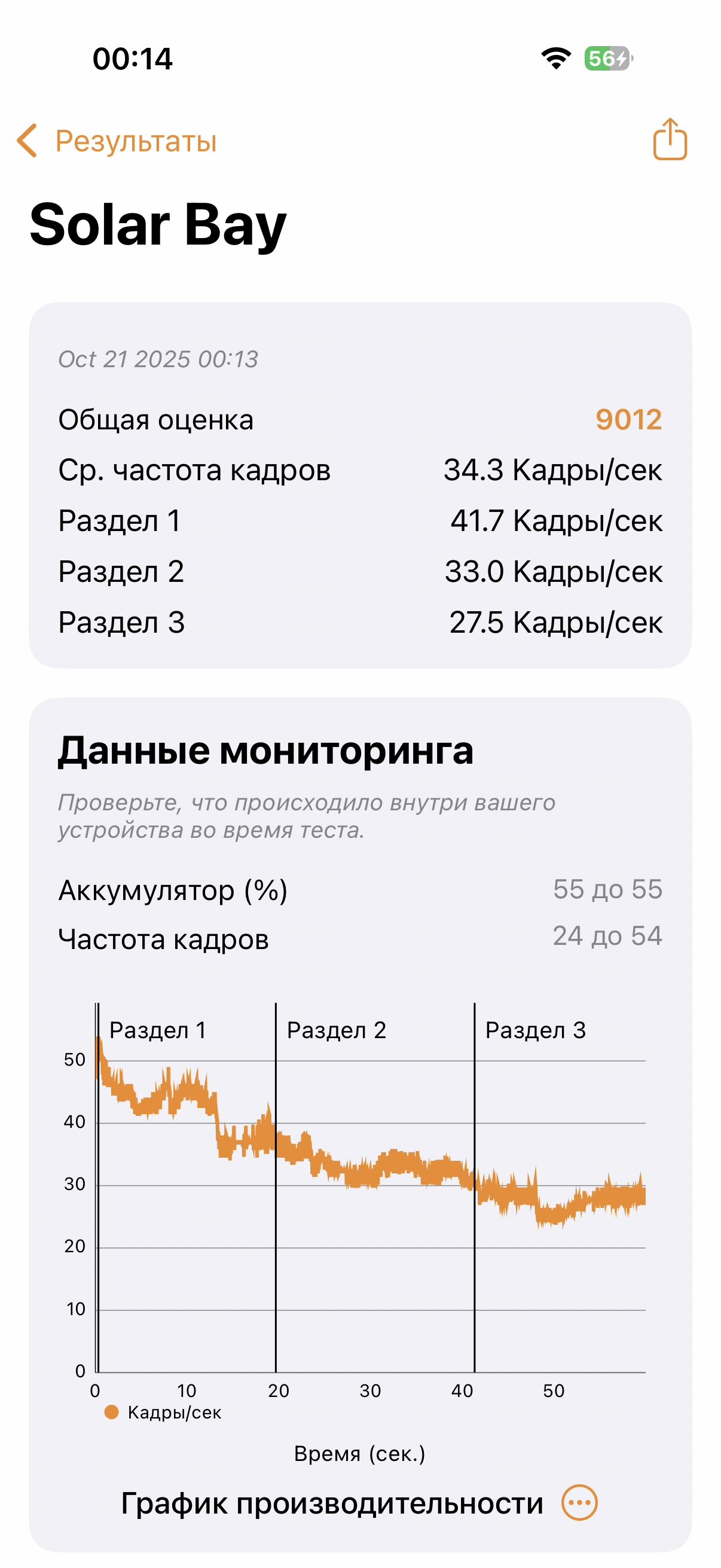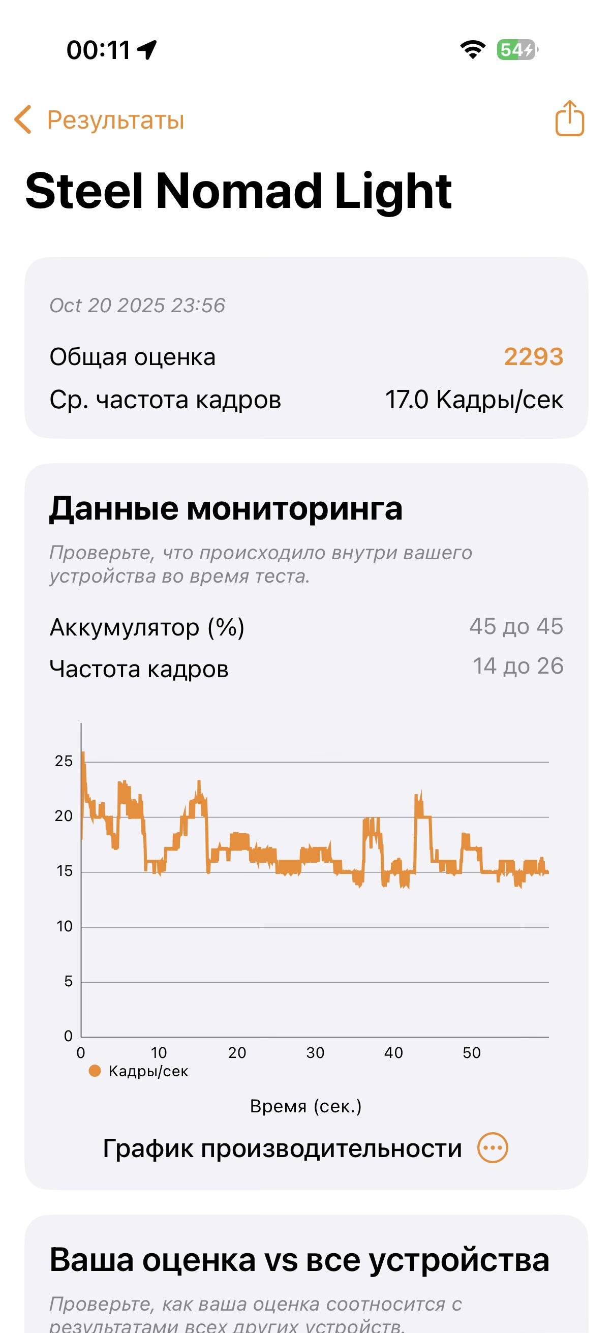 Если вам интересно еще циферок, то я прогнал дополнительно GeekBench, 3DMark и другие бенчи из пакета AnTuTu. Здесь сказать особо нечего, потому что A19 Pro — топовый и мощнейший мобильный процессор от Apple и ждать, что у него будут низкие результаты нет буквально никакого смысла. Скорости накопителя тоже очень хорошие, но если бы была версия не на 256 ГБ, а на 512 ГБ, то, скорее всего, цифры были бы еще лучше. Именно так у меня было с 16-ой линейкой, когда скорость накопителя увеличивалась вместе с объемом.