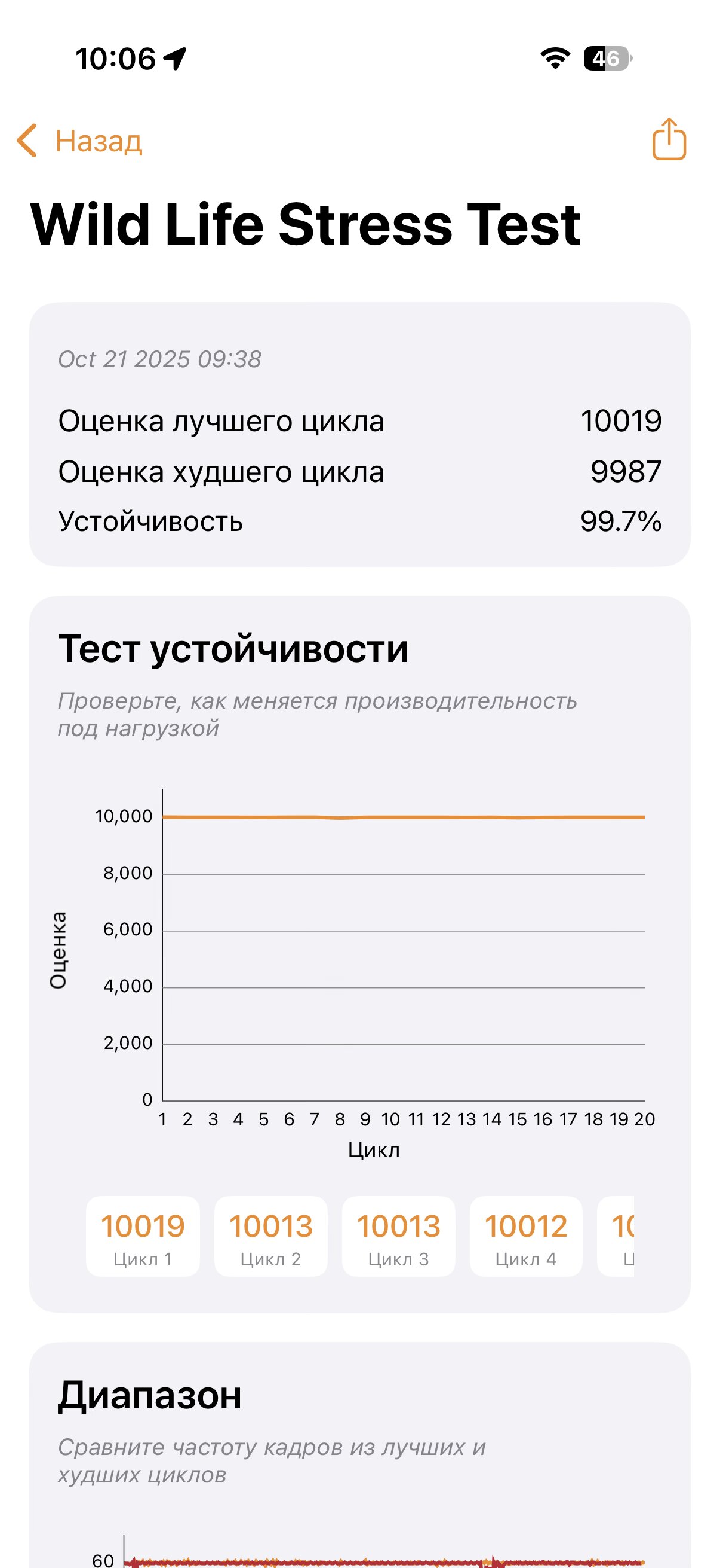 Что касается стабильности в работе, то закрепить собственное мнение я решил бенчмарком 3DMark Wild Life Stress Test. Смартфон показал стабильность 99,7%, что я считаю отличным результатом. Да и в целом стабильность устройства вопросов у меня не вызывает.